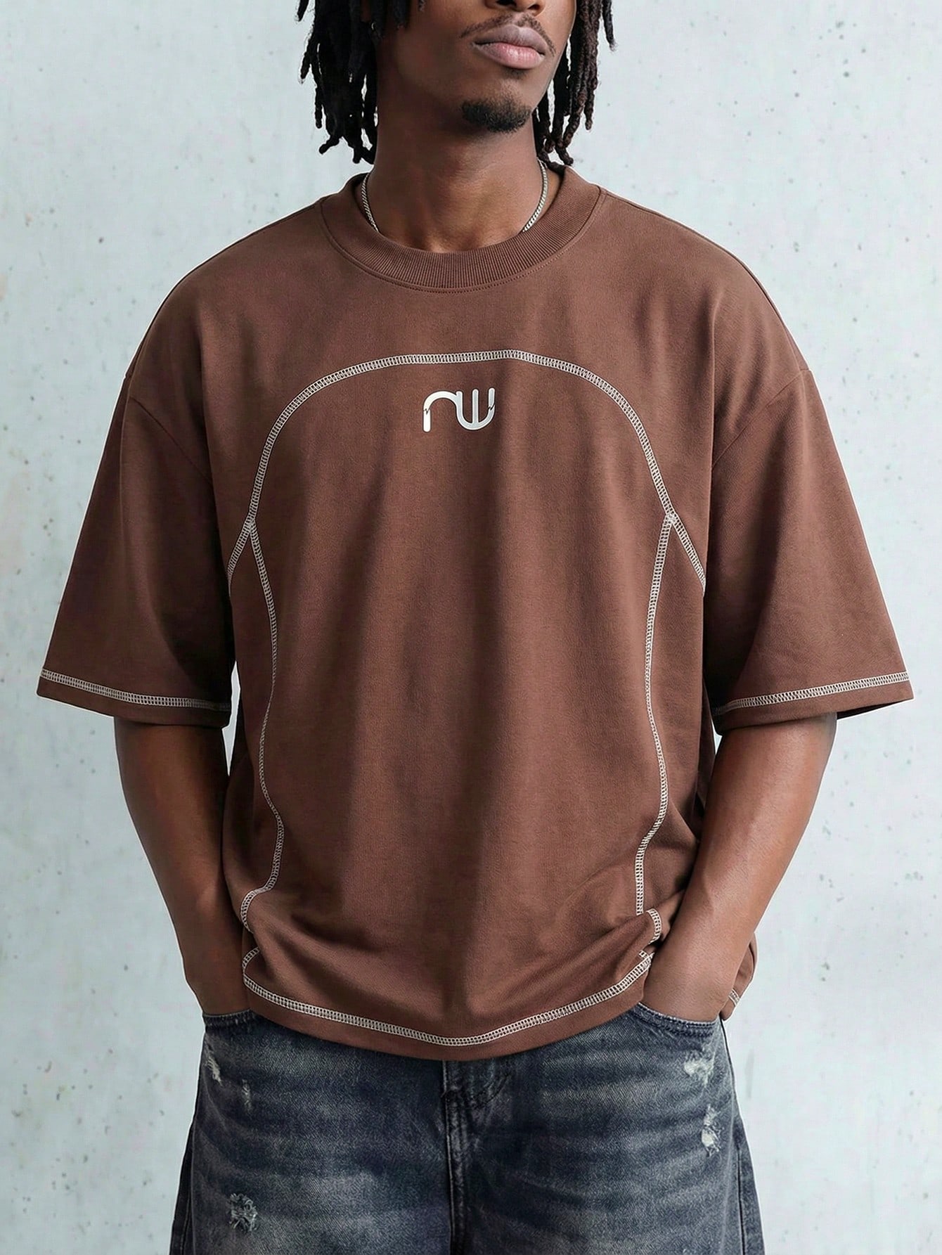 Essentials قميص كاجوال فضفاض للرجال مع تصميم كتف منخفض وخطوط منحنية، بطراز الشارع