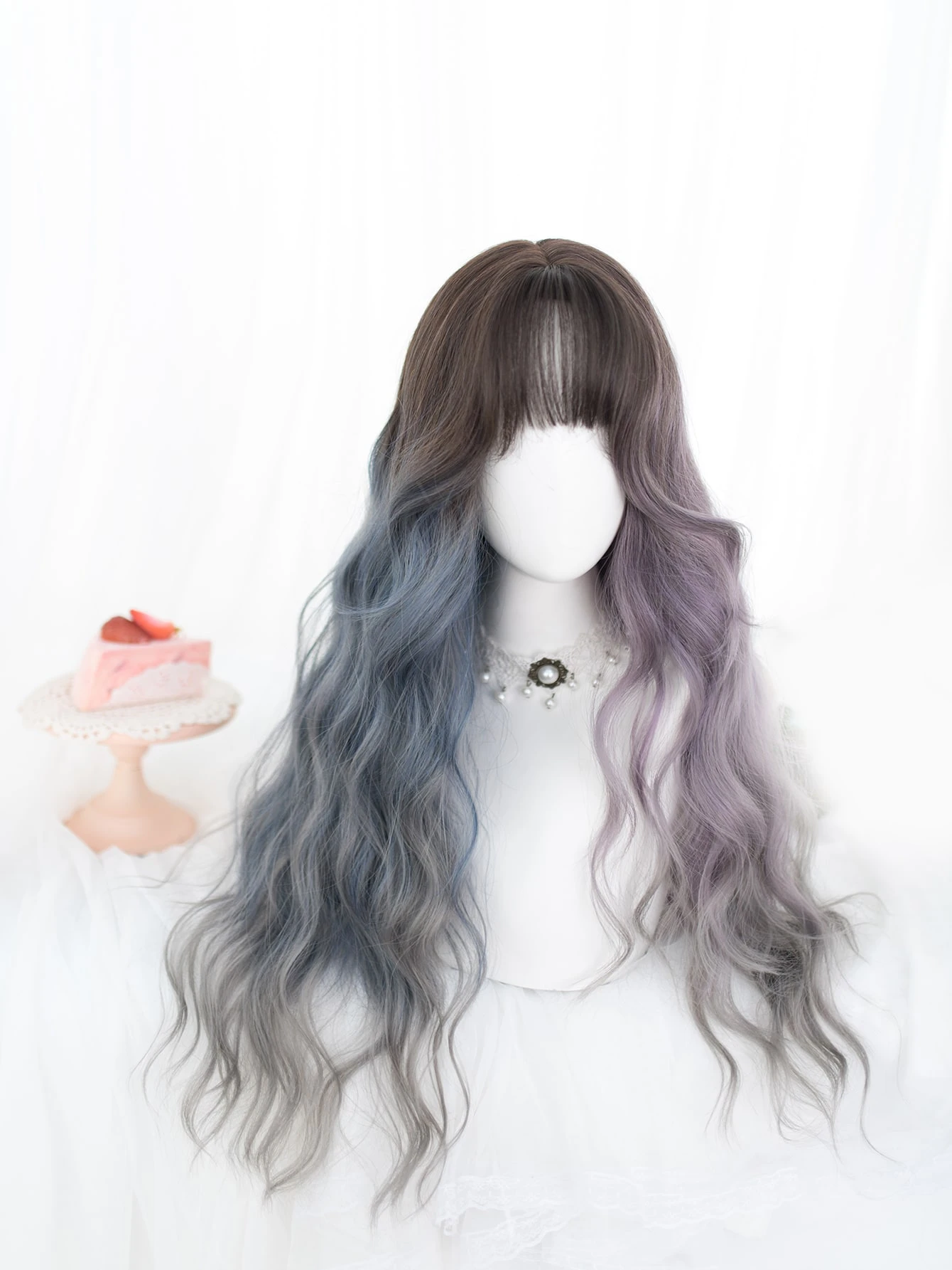 شعر مستعار صناعي طويل جدًا مجعد مع شعر ناصية