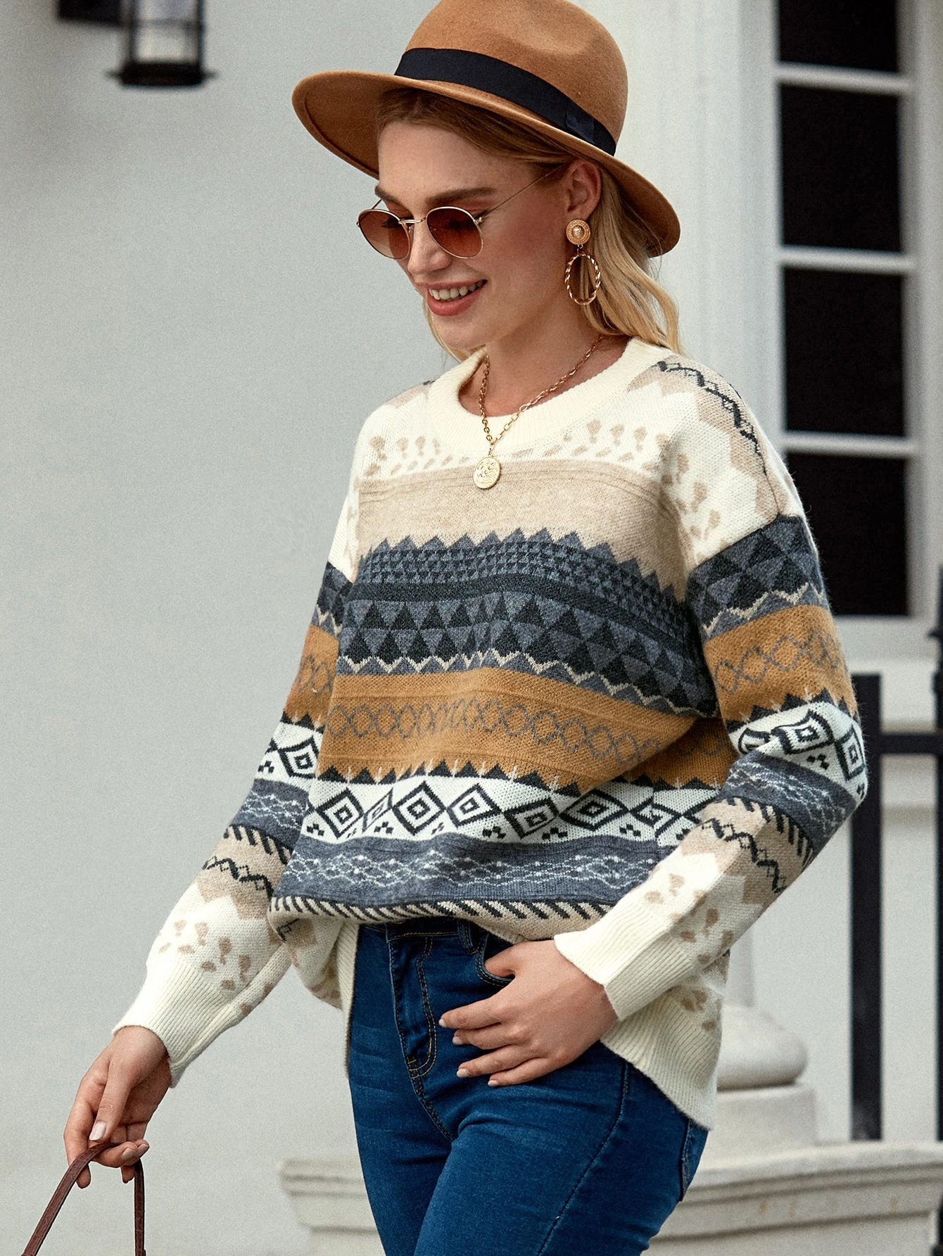 سترة صوفي منخفض الاكتاف بطباعة شعلة