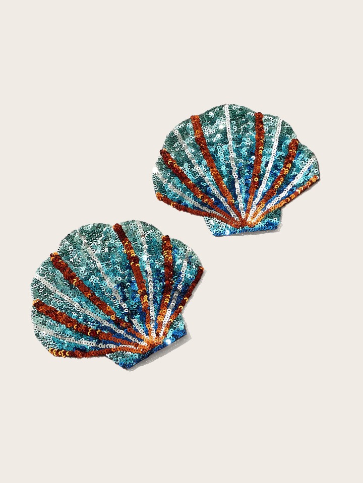 Fairycore غطاء حلمة الثدي حورية البحر شكل صدف ترتر متباين اللون 1 زوج