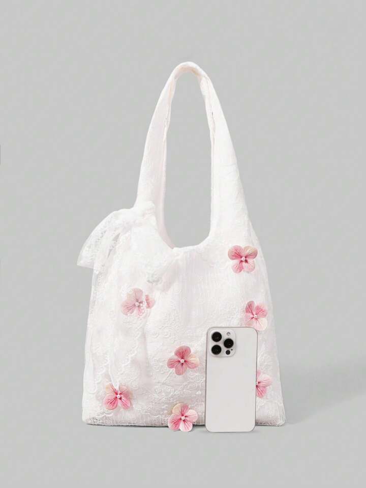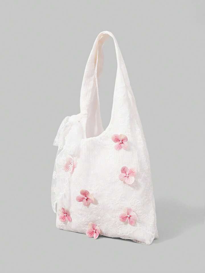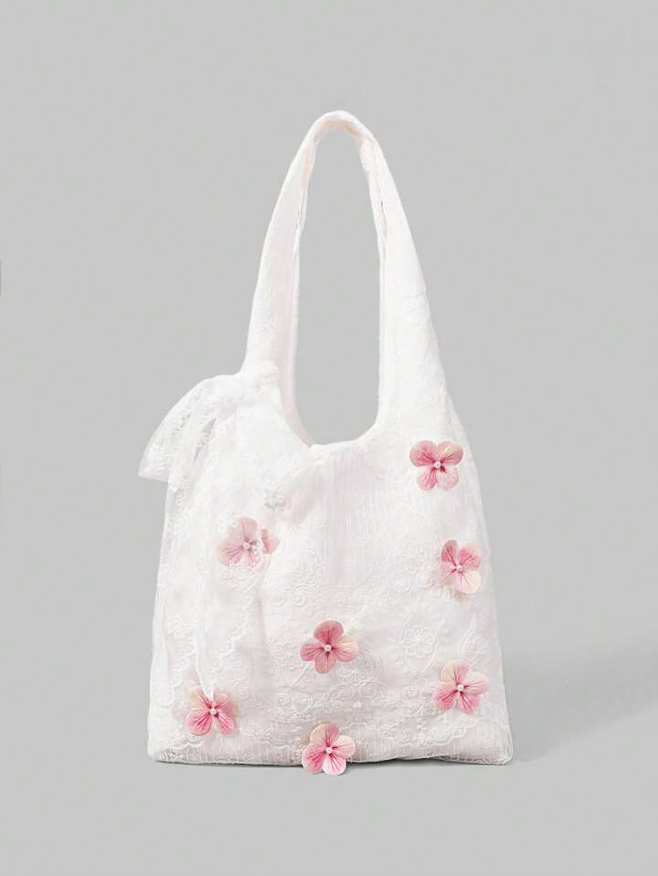Fairycore مجموعة واحدة حقيبة كتف من الدانتيل الأبيض والاكسسوارات، حقيبة ذات طراز شخصي ل سيدات للشاطئ والمنتجعات، تشمل حقيبة واحدة ومجموعة من الاكسسوارات