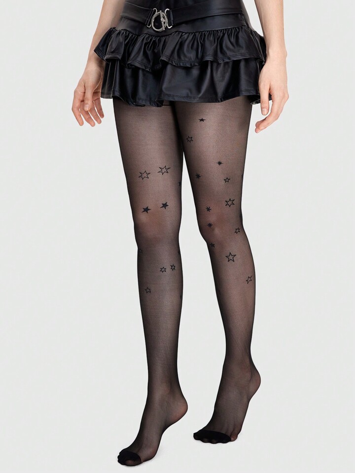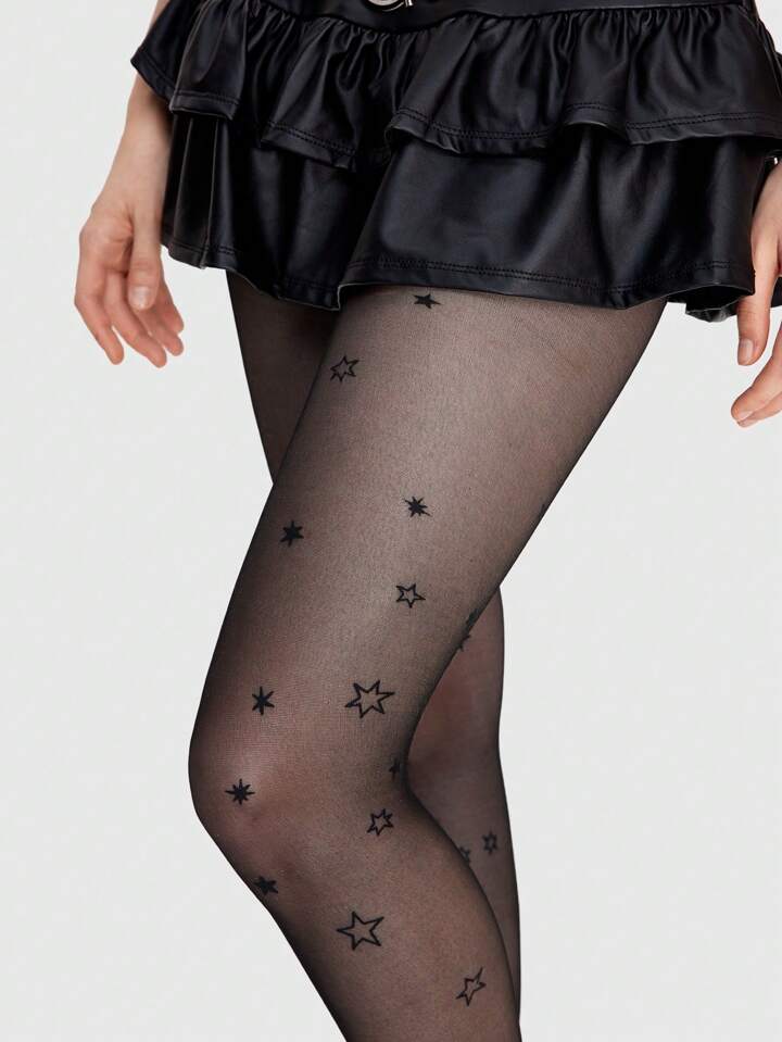 Fairycore جوارب ضيقة بنمط نجمة كبيرة مجوفة ونجمة صغيرة، قطعة واحدة