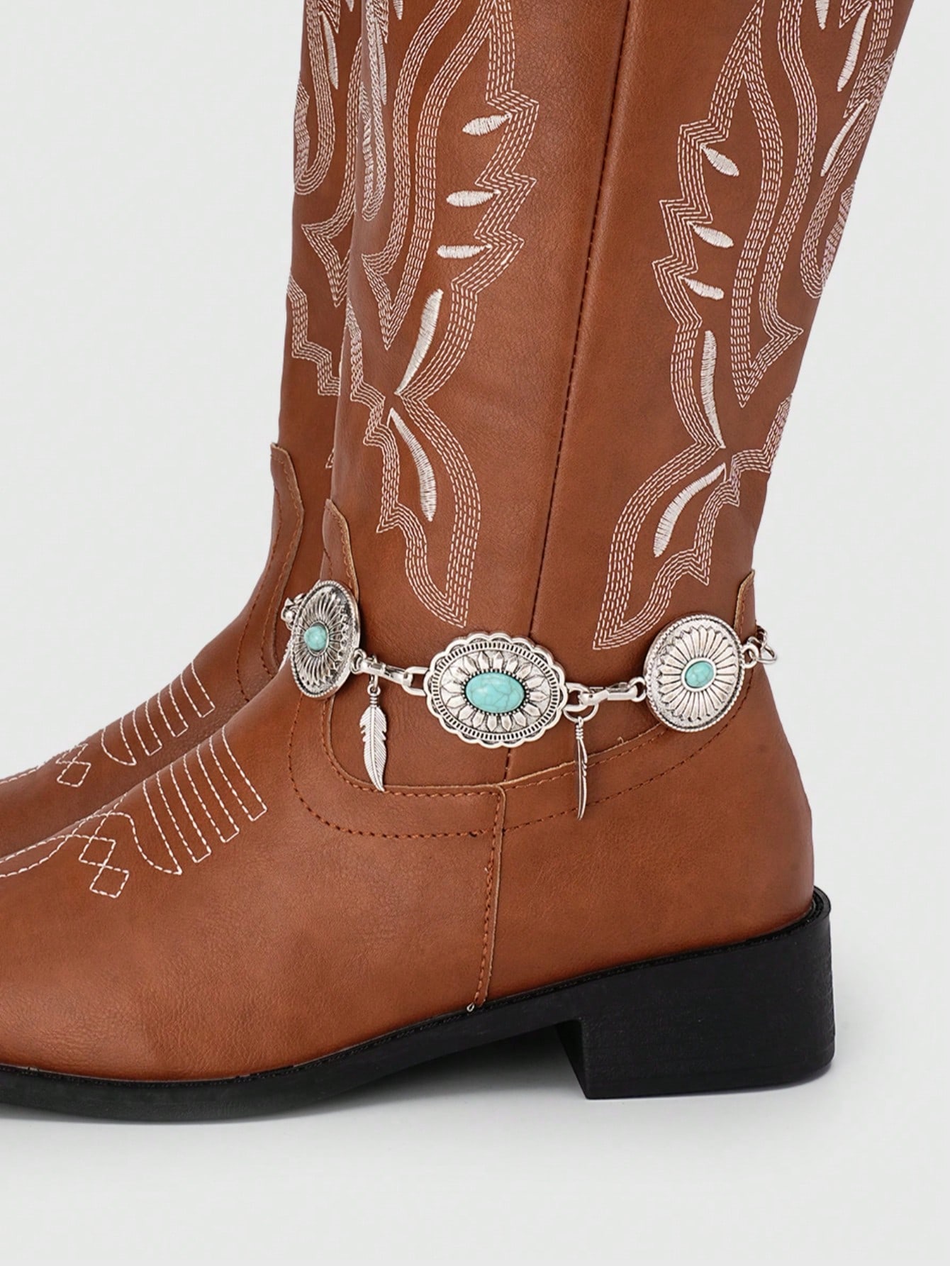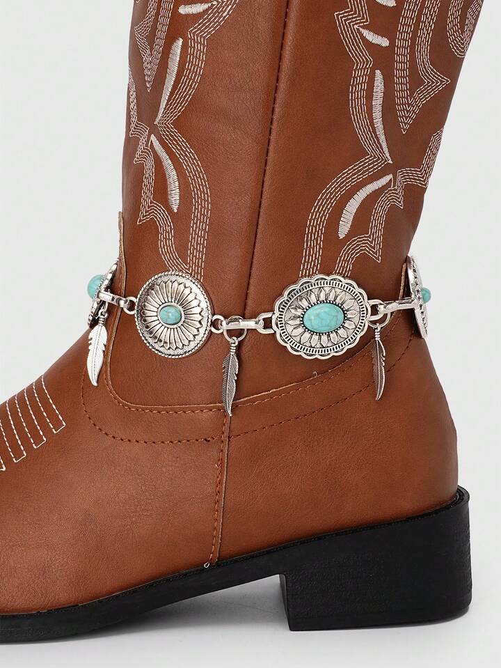 Fairycore 1 قطعة سلسلة حذاء معلق بطراز بوهيمي مزخرف بالفيروز، إكسسوار حذاء عتيق، مناسب للخريف/الشتاء لتعزيز الجو الغامض