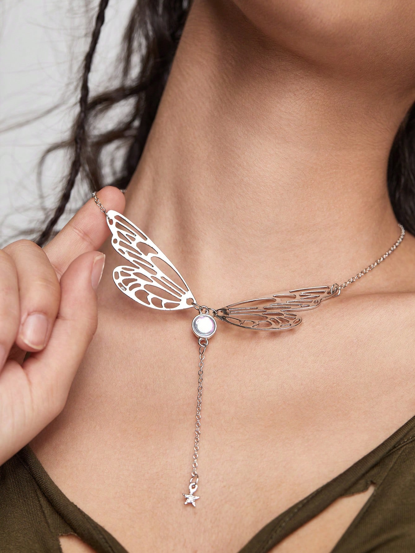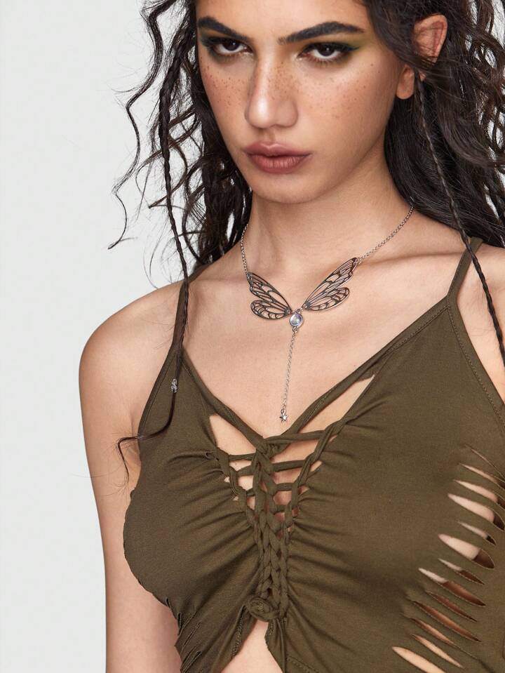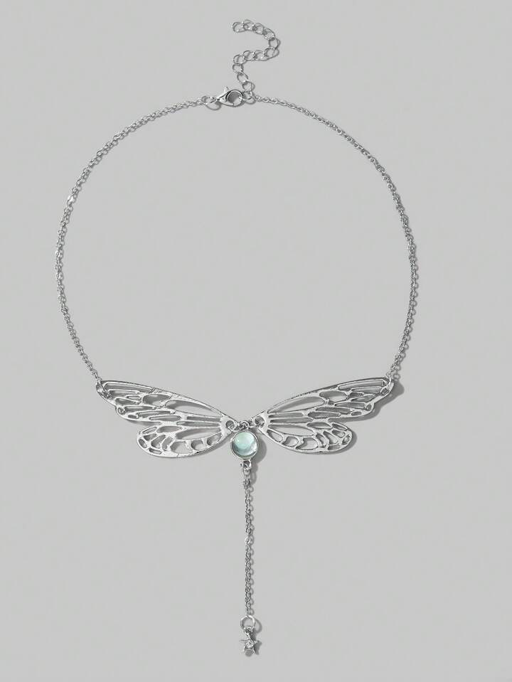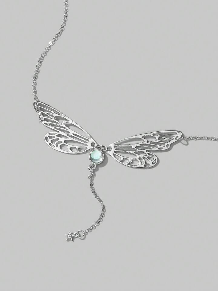 Fairycore قلادة على شكل حرف Y موضة حديد سبيكة زخرفة فراشة للنساء الزخرفة اليومية قطعة واحدة