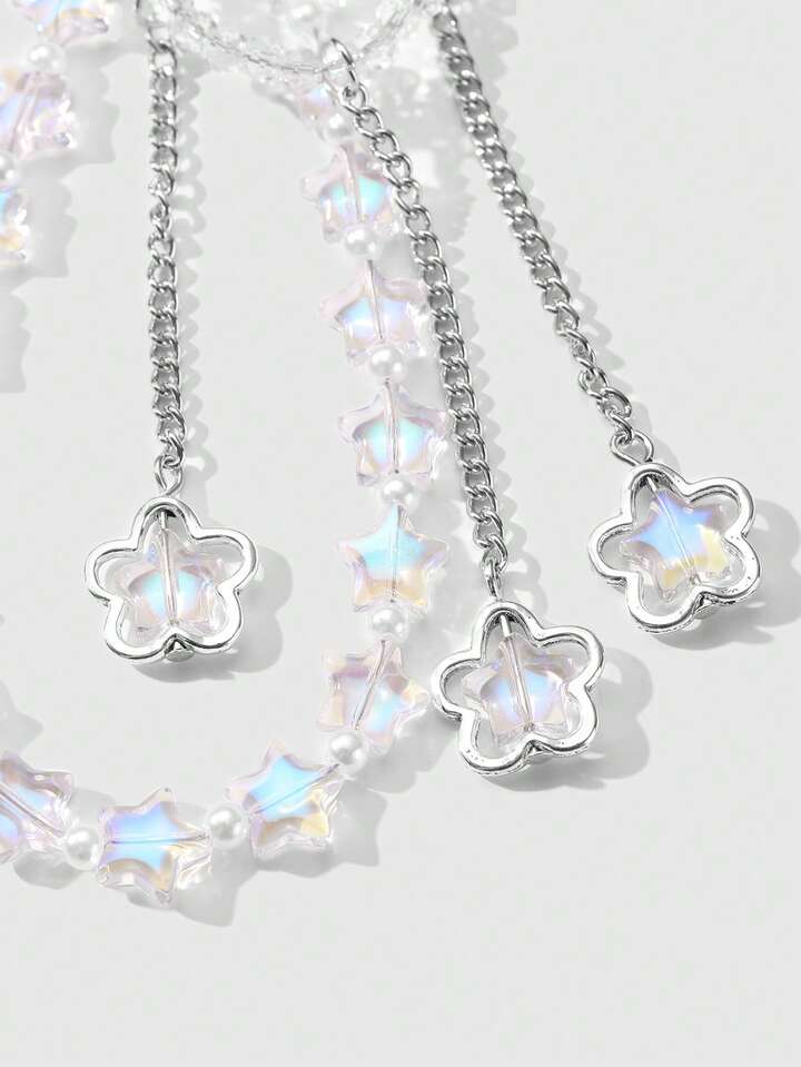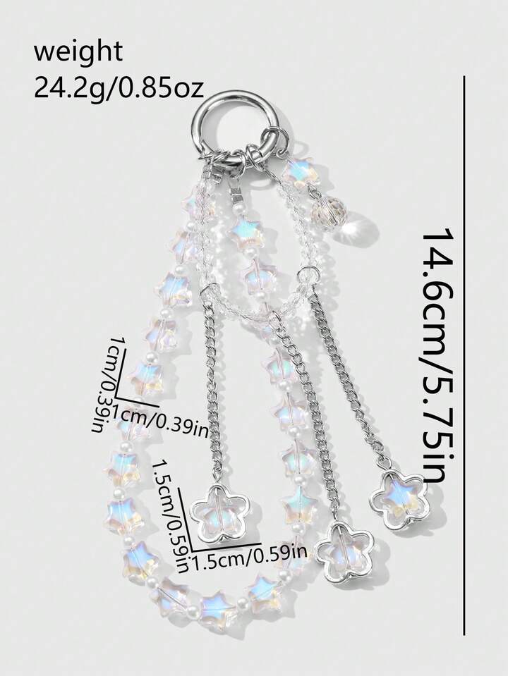 Fairycore 1 قطعة علاقة بحرية نجمية مصنوعة يدويًا من خرز الآللئ المزيفة والكريستال لائقة وعصرية ومتعددة الاستخدامات، مناسبة كحامل للهاتف أو سلسلة مفاتيح أو تعليقة للحقيبة أو زخرفة للهاتف أو للاستخدام اليومي أو كهدية للنساء