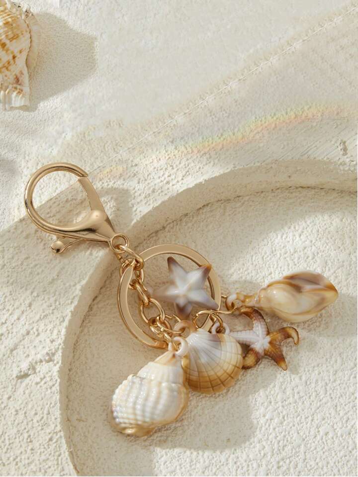 Fairycore 1 قطعة سلسلة مفاتيح على شكل قوقعة شاطئية للعطلة، قلادة من البلاستيك الشفاف بشكل نجمة البحر والخماسية