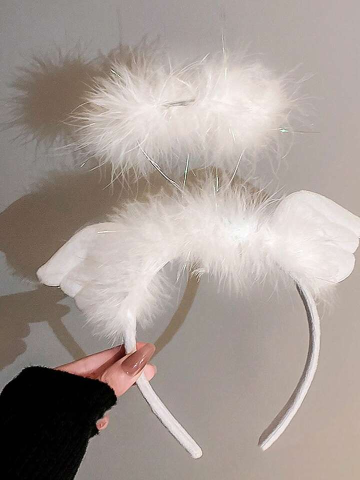 Fairycore حزام على الرأس أبيض جناح ديكور قطعة واحدة