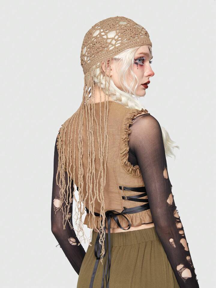 Fairycore قبعة كروشيه قص مجوف قطعة واحدة نساء
