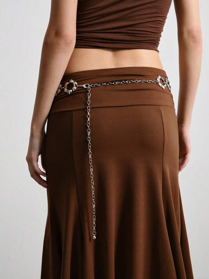 Fairycore 1 قطعة سلسلة خصر على شكل زهرة فضية مجوفة للنساء،إكسسوار ثوب خاص لكل المناسبات اليومية