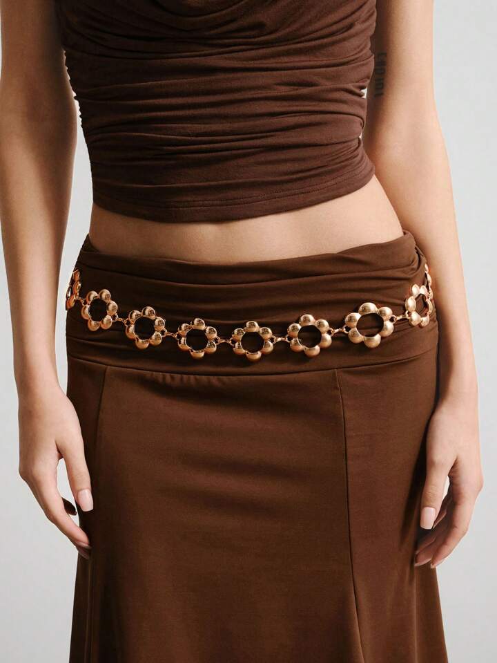 Fairycore قطعة زخرفية للخصر بشكل زهرة مجوفة من الذهب للنساء، متعددة الاستخدامات للارتداء اليومي