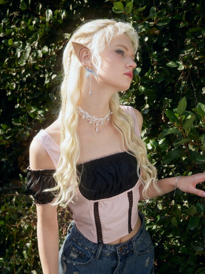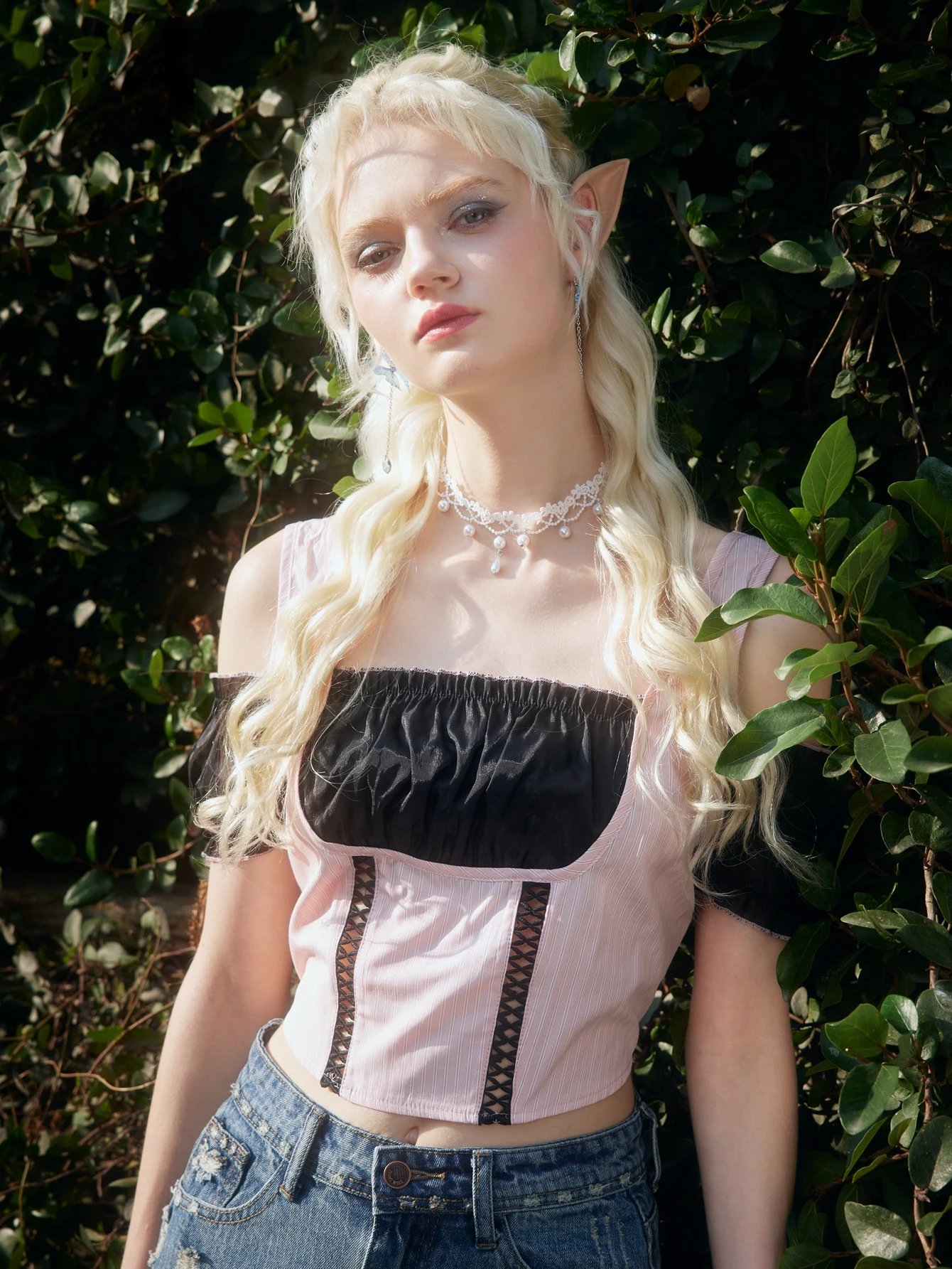 Fairycore بلوزة 2 في 1 كتف مكشوف