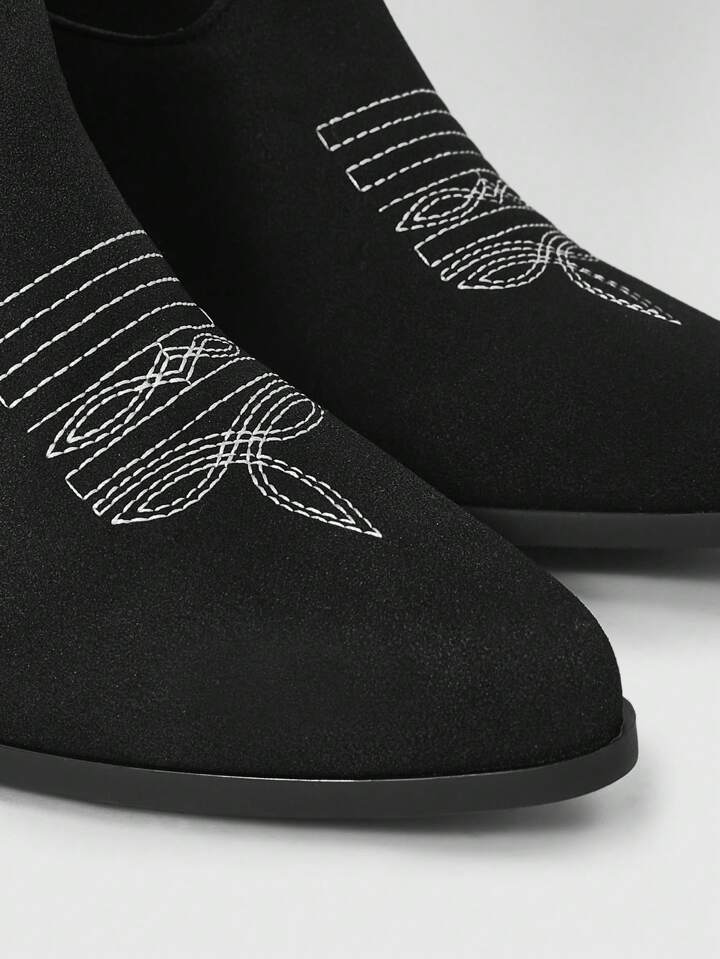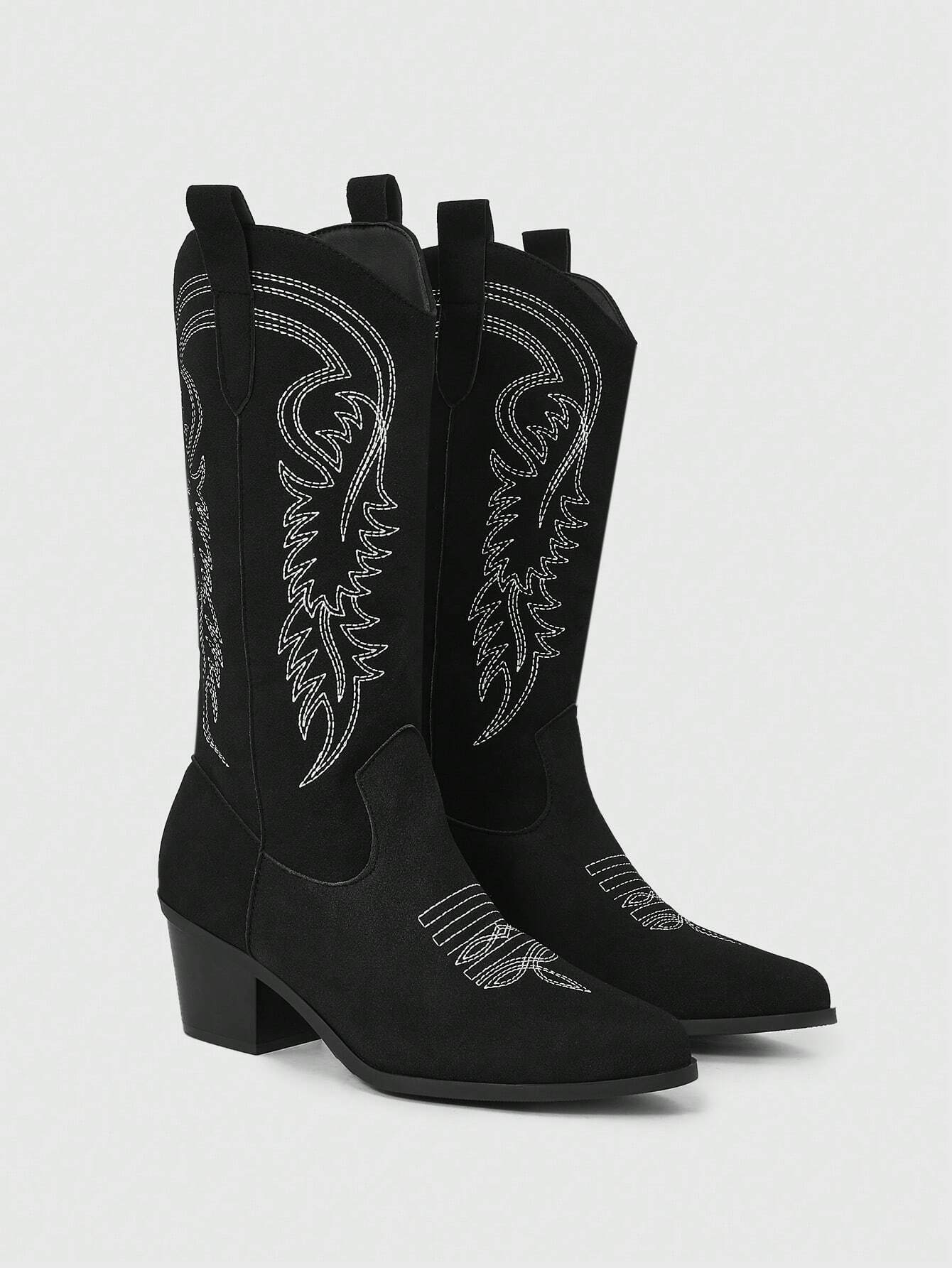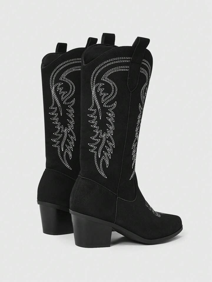 Fairycore بوط نسائي أنيق ذو تطريز غربي، قطع على شكل V، كاجوال، للارتداء من دون ربط للكاحل متوسط الارتفاع، مناسب لأعياد ورأس السنة الجديدة ، المقاس 2024