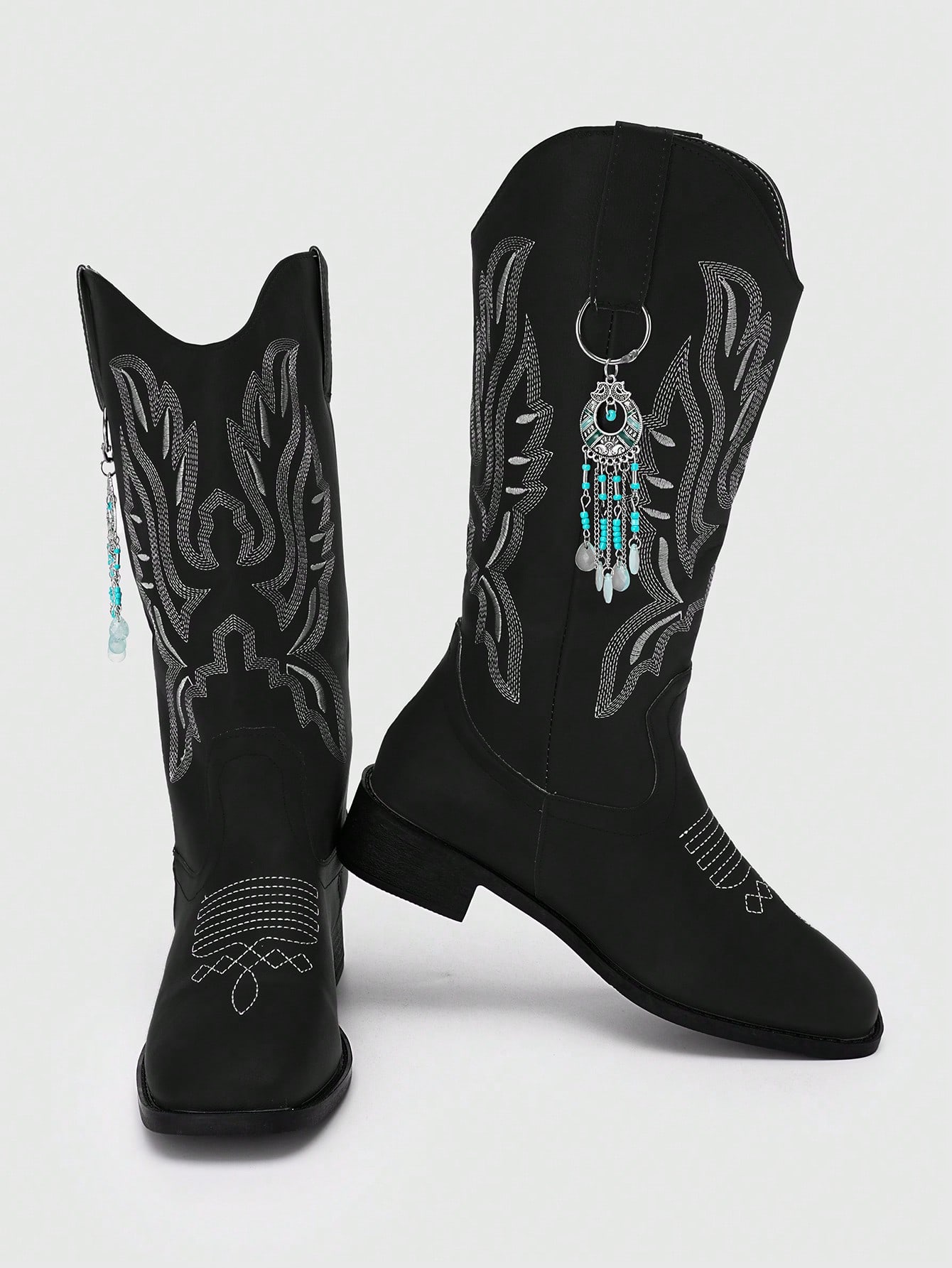Fairycore قطعتان من الشرابات والخرز على الطراز البوهيمي كتعليقات للأحذية/الأحذية الطويلة، ديكورات معلقة، مناسبة لتزيين الأحذية/الأحذية الطويلة لتعزيز الأناقة، هدايا عيد الميلاد/العطلات/المهرجانات