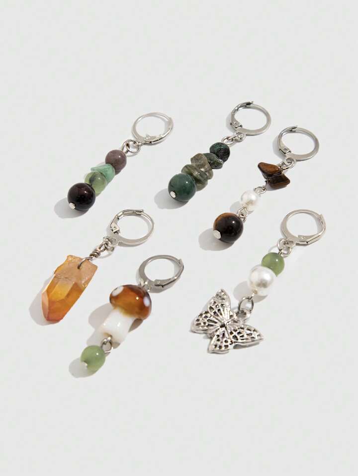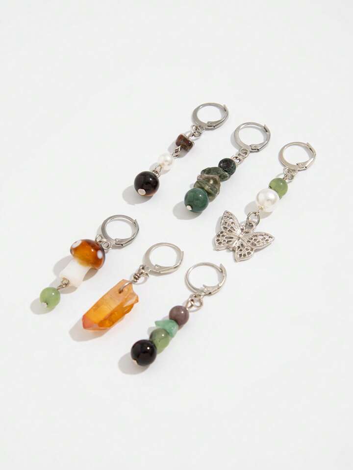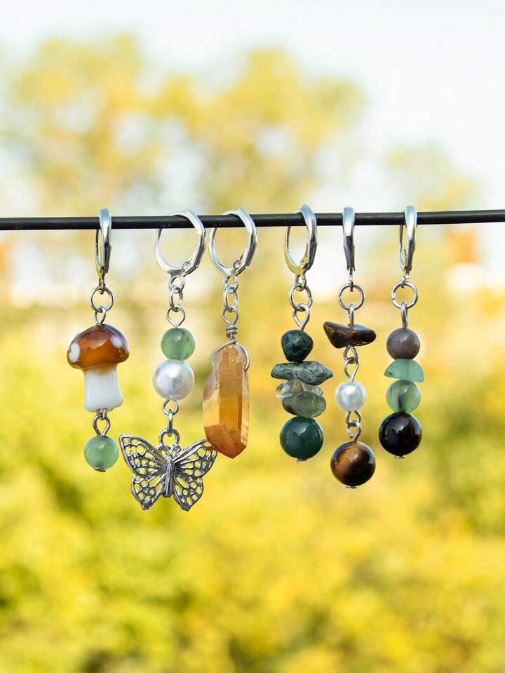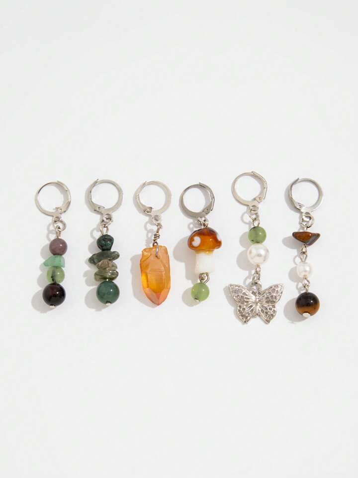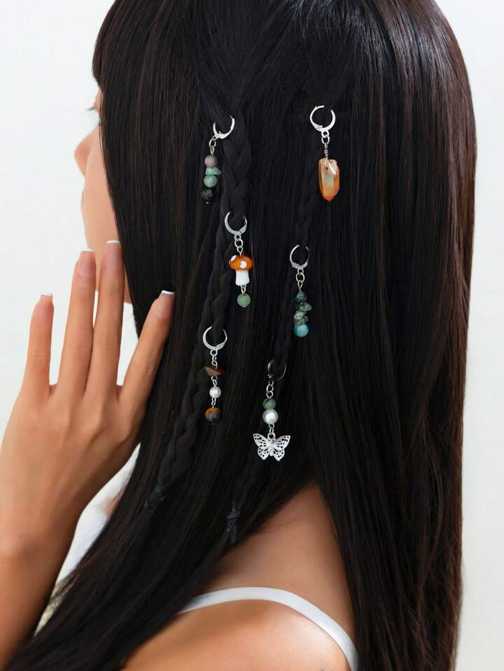Fairycore 6 قطع مجموعة طراز بوهيمي زخارف معلقة فراشة وفطر مرصعة بالكريستال مع سلسلة خرز ربطة شعر