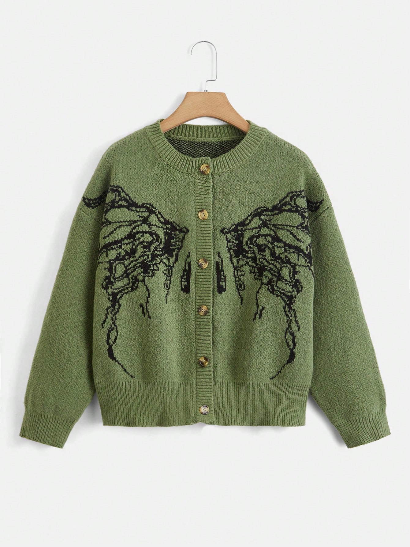 Fairycore كارديجان جرافيك الفراشة منخفض الاكتاف