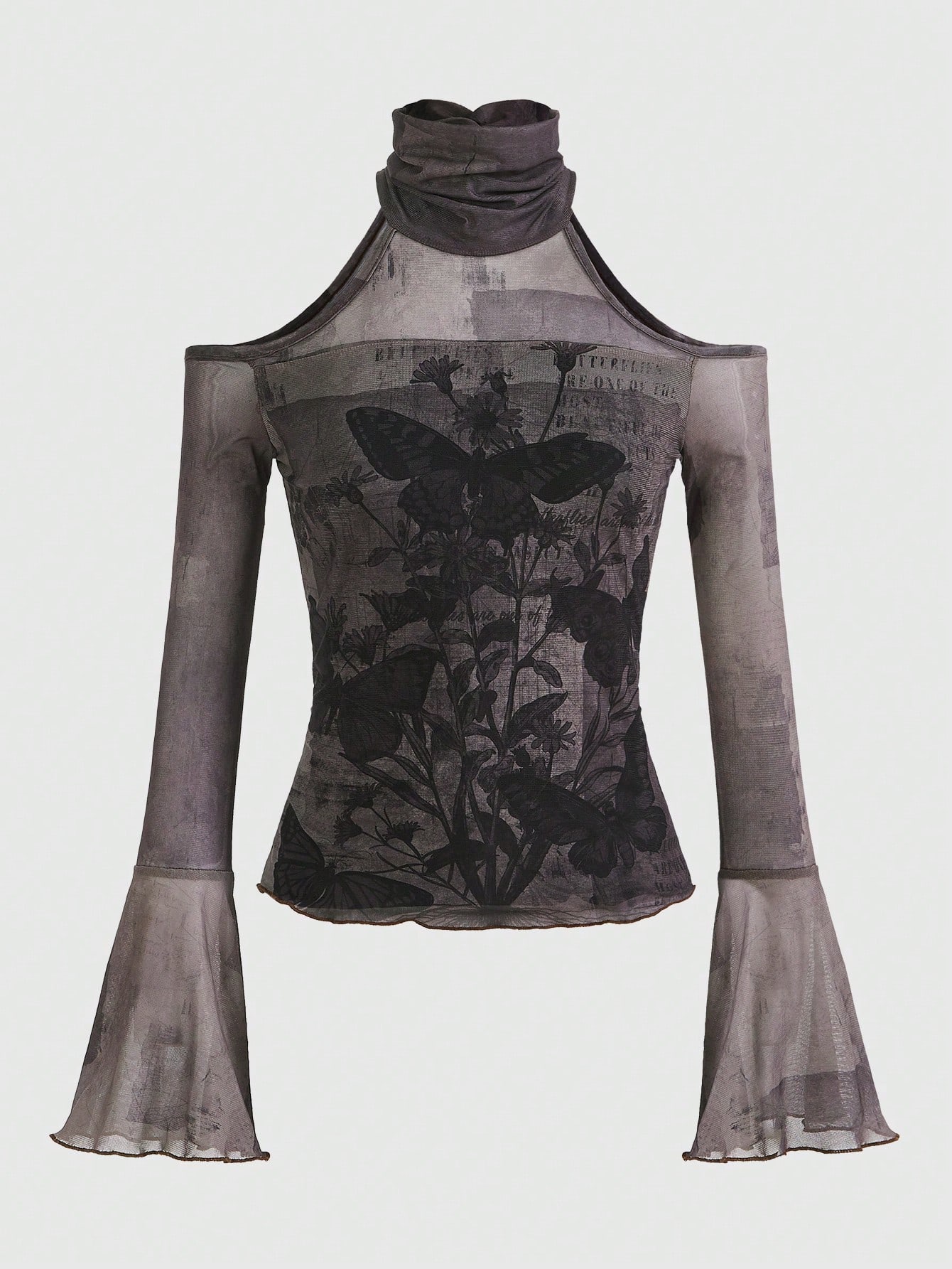 Fairycore لباس علوي بطباعة الفراشة كتف مكشوف اكمام واسعة شبكة