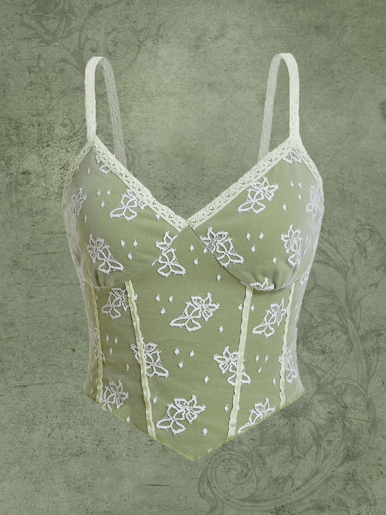 Fairycore لباس علوي كامي بطباعة الفراشة مقلم دانتيل