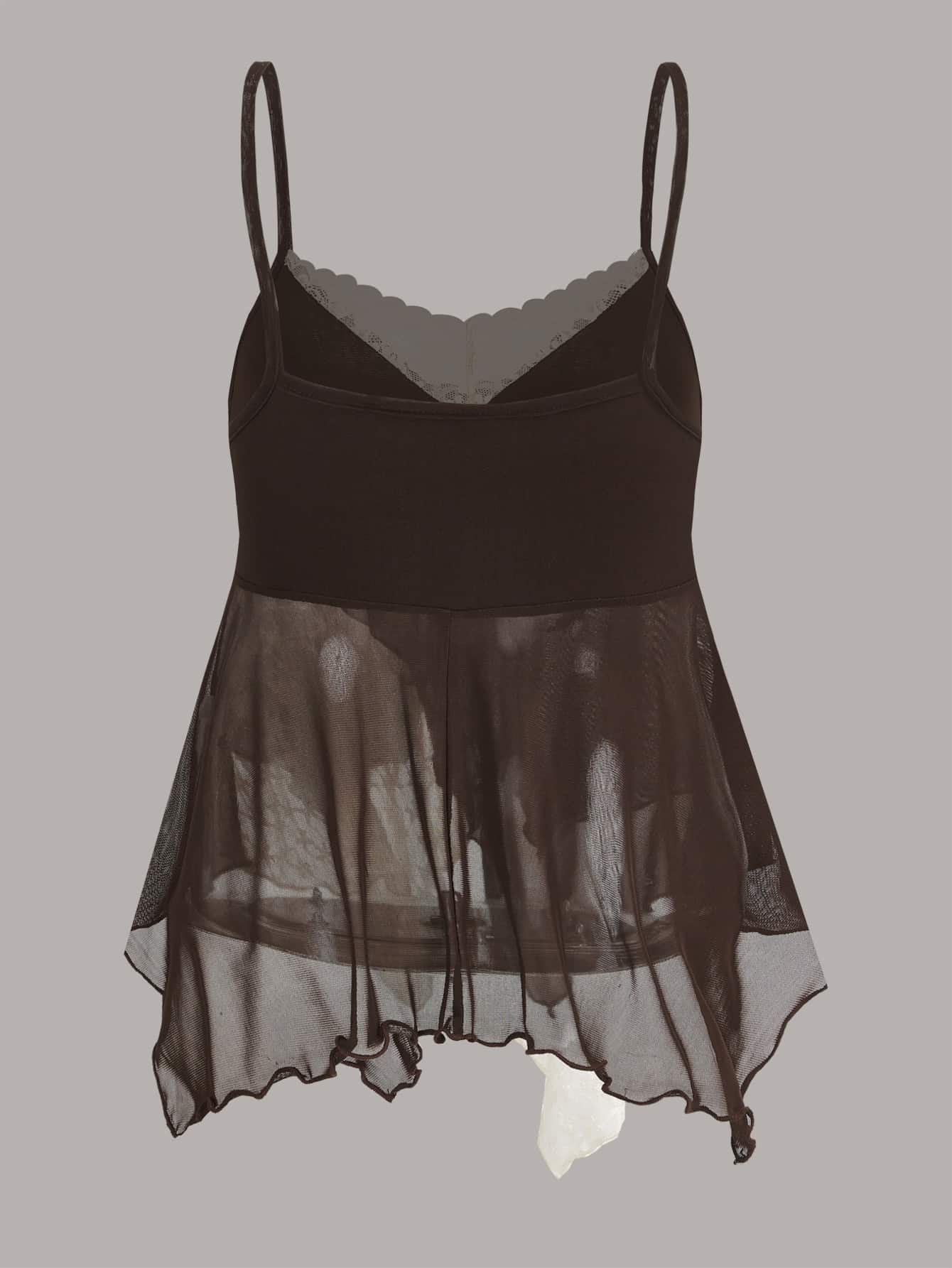 Fairycore صدرية كامي دانتيل متباين اللون حافة طبقات