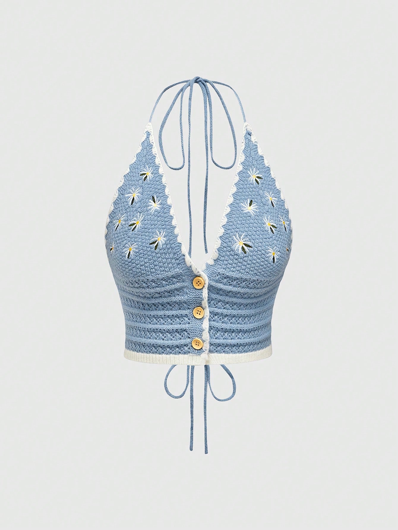 Fairycore كنزة صوفية صوفية نسائية بياقة مكشوفة والكتف واحدة مضلعة بنمط الزهور