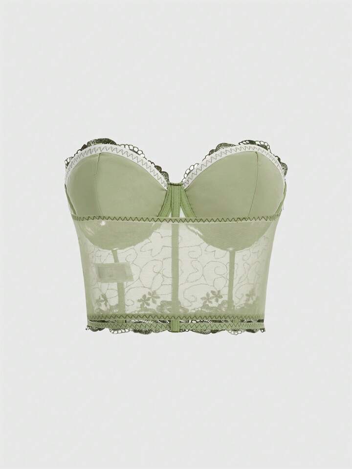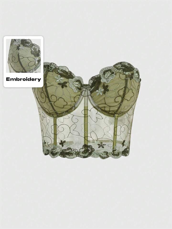 Fairycore لباس علوي بدون حمالات مطرز بأزهار شبكة
