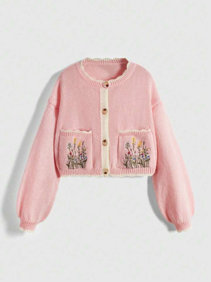 Fairycore كارديجان مطرز بأزهار مقلم شكل اقواس منخفض الاكتاف