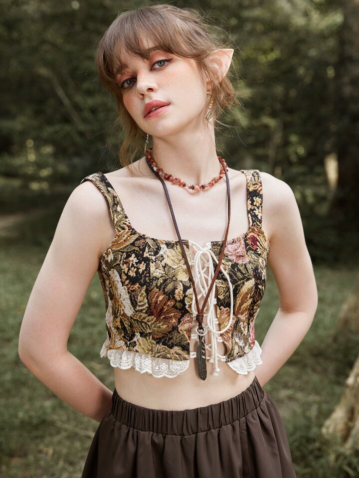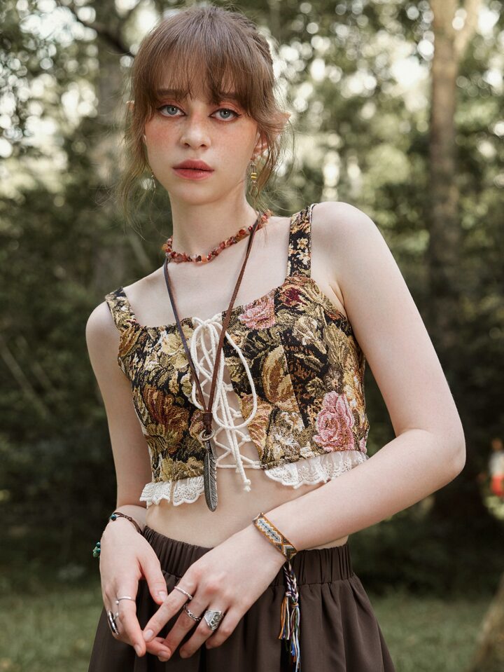 Fairycore صدرية كامي طباعة الأزهار رباط امامي