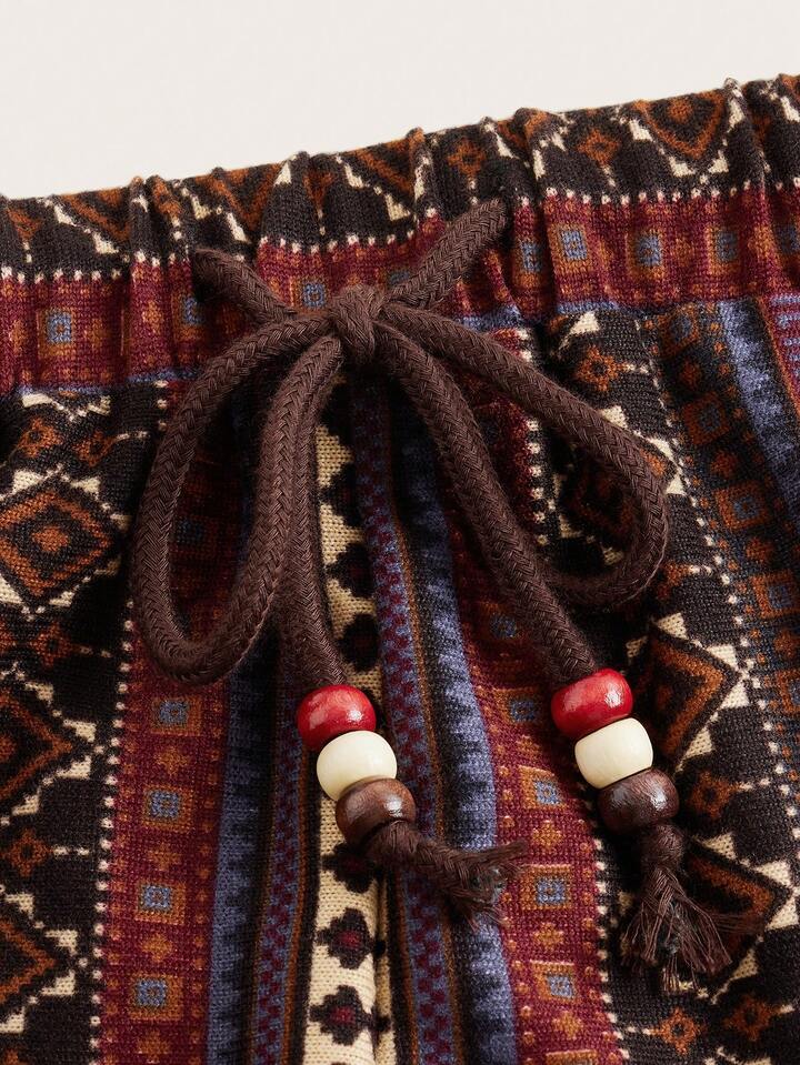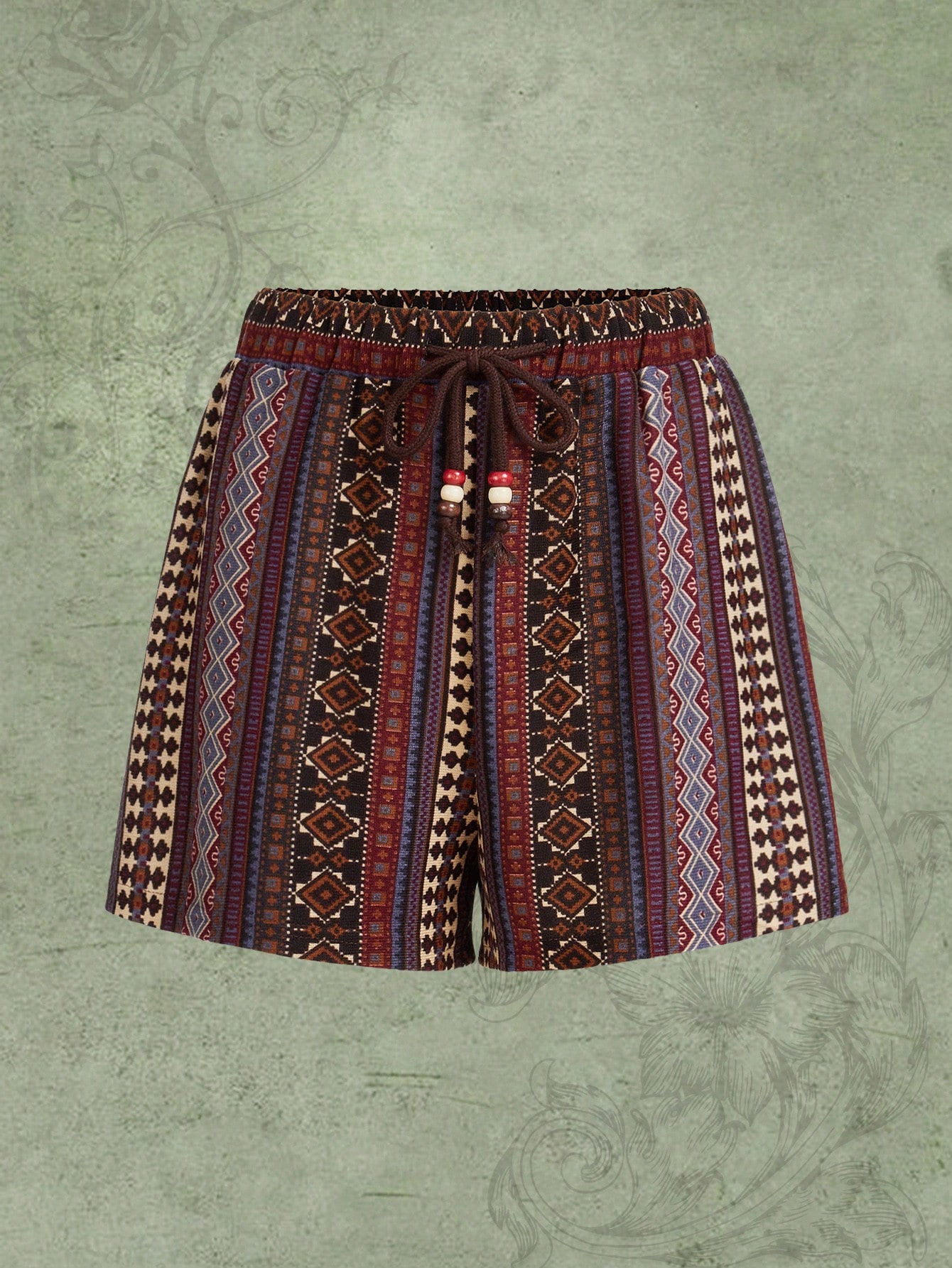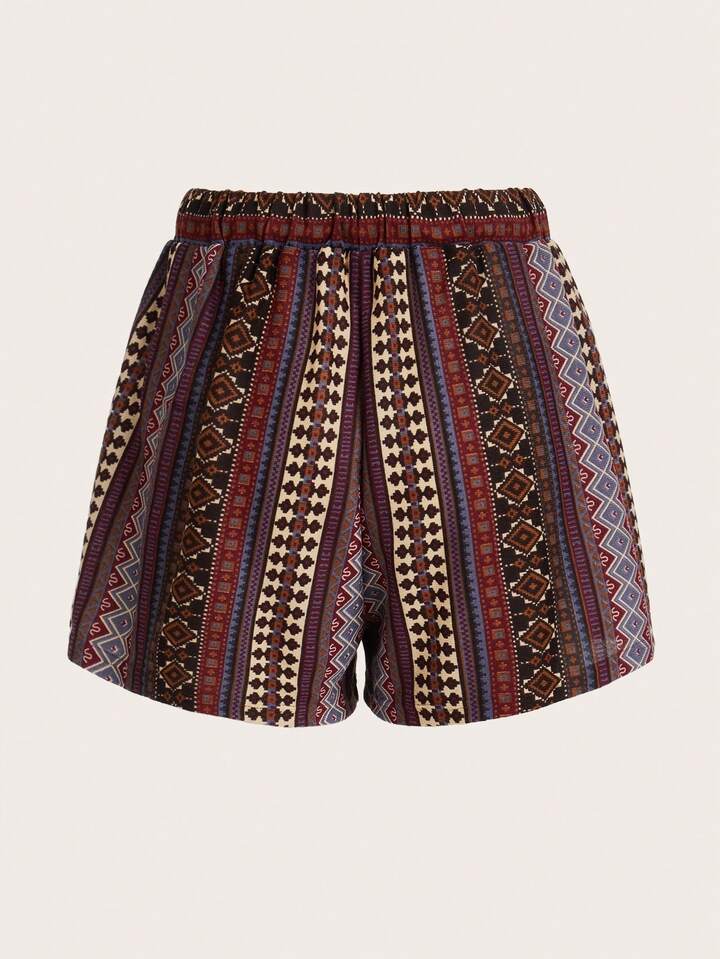 Fairycore بنطلون قصير طباعة هندسية رباط خصر