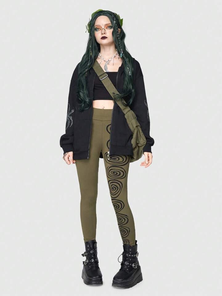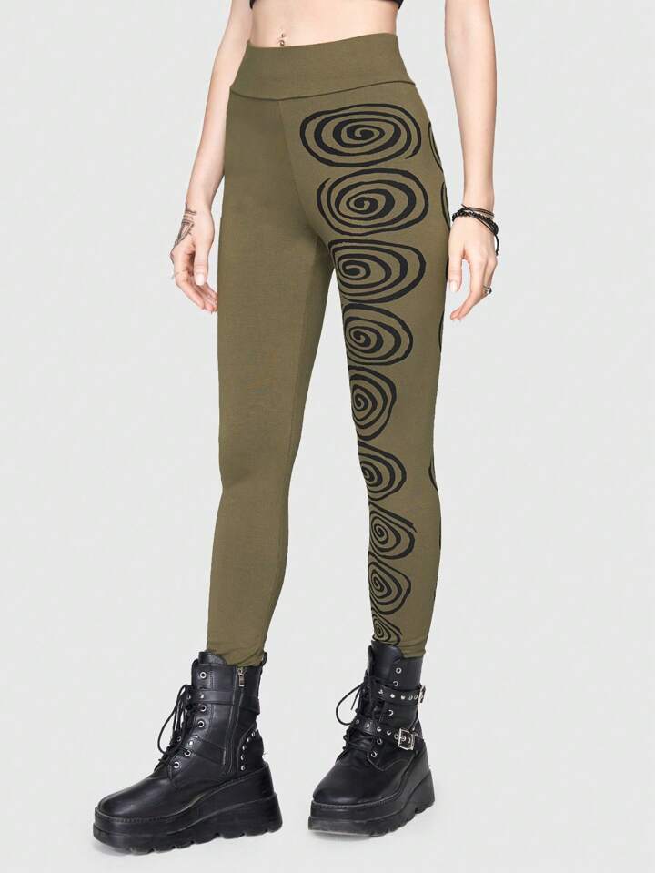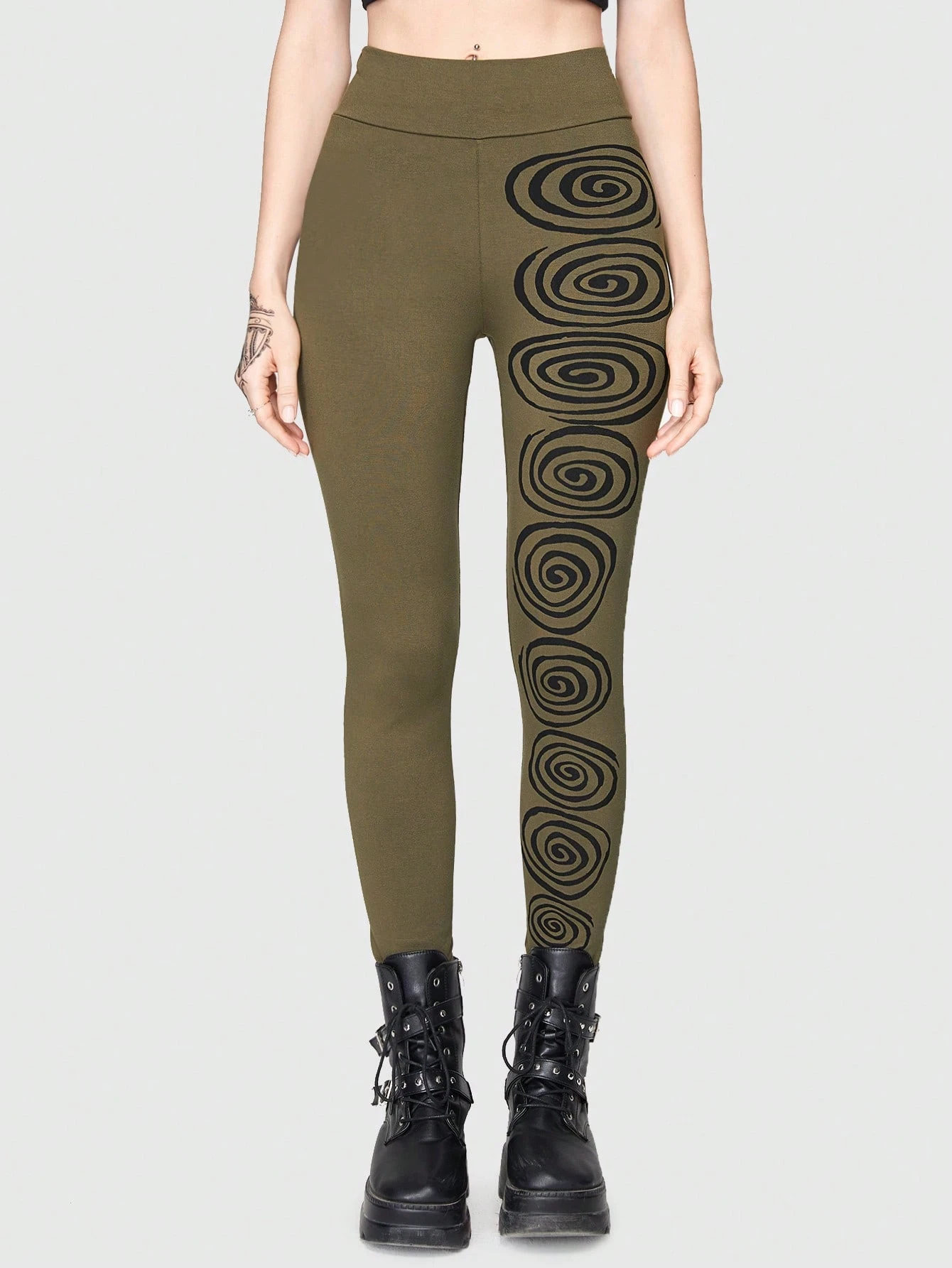 Fairycore طماق طباعة النقش شريط خصر واسع