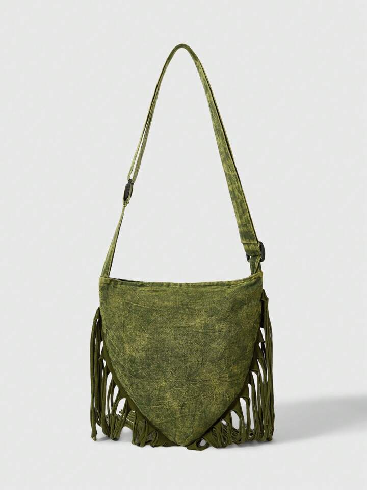 Fairycore حقيبة كروسبودي مصنوعة يدويًا بطراز الهيبي مزينة بالدانتيل المُزهر المتدلي مع أشرطة، حقيبة رسول عشوائية الصبغة مناسبة للسفر وحفلات الموسيقى بسحاب معدني