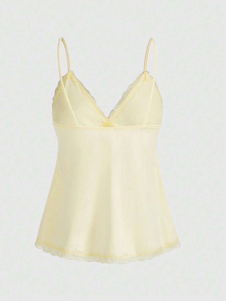 Fairycore حمّالة كامي صيفية للسيدات بموحد اللون وحواف بطبقات دانتيل مع زخرفة الكشكشة