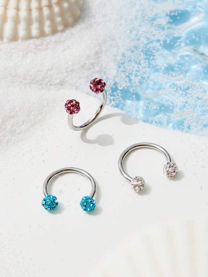 Fairycore حورية البحر حلقة شفاة لون عشوائي جبان فولاذ غير قابل للصدأ بديكور حجر الراين للنساء الزخرفة اليومية قطعة واحدة