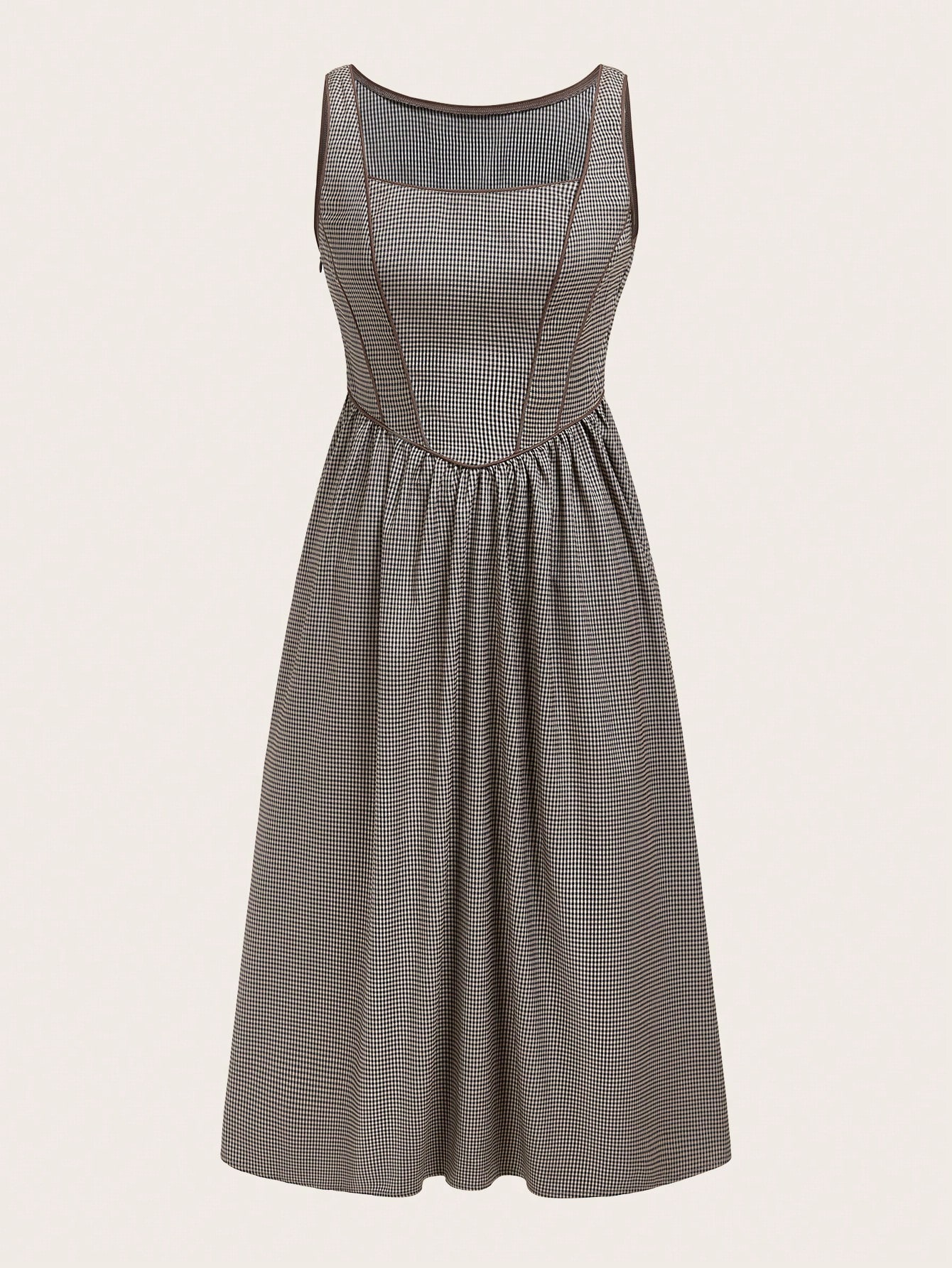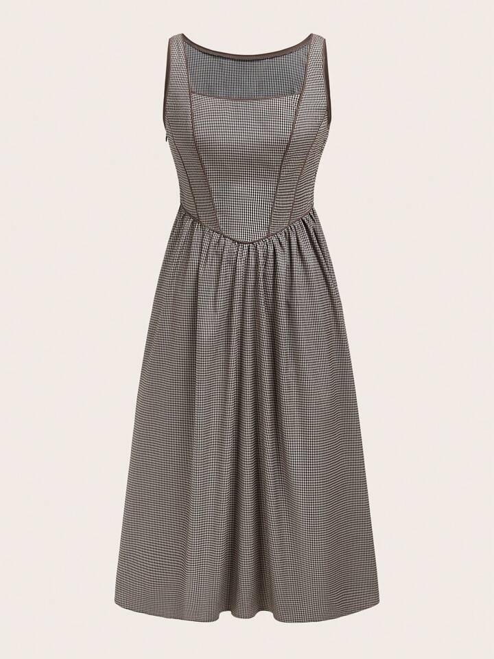 Fairycore فستان طباعة مربع النقش بدون لباس علوي