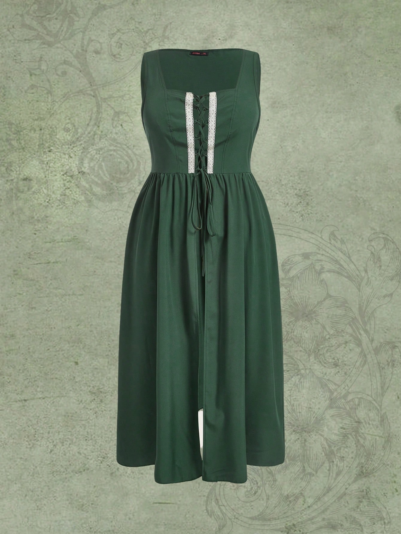 Fairycore فستان مقلم دانتيل معقود من الأمام مقاس كبير
