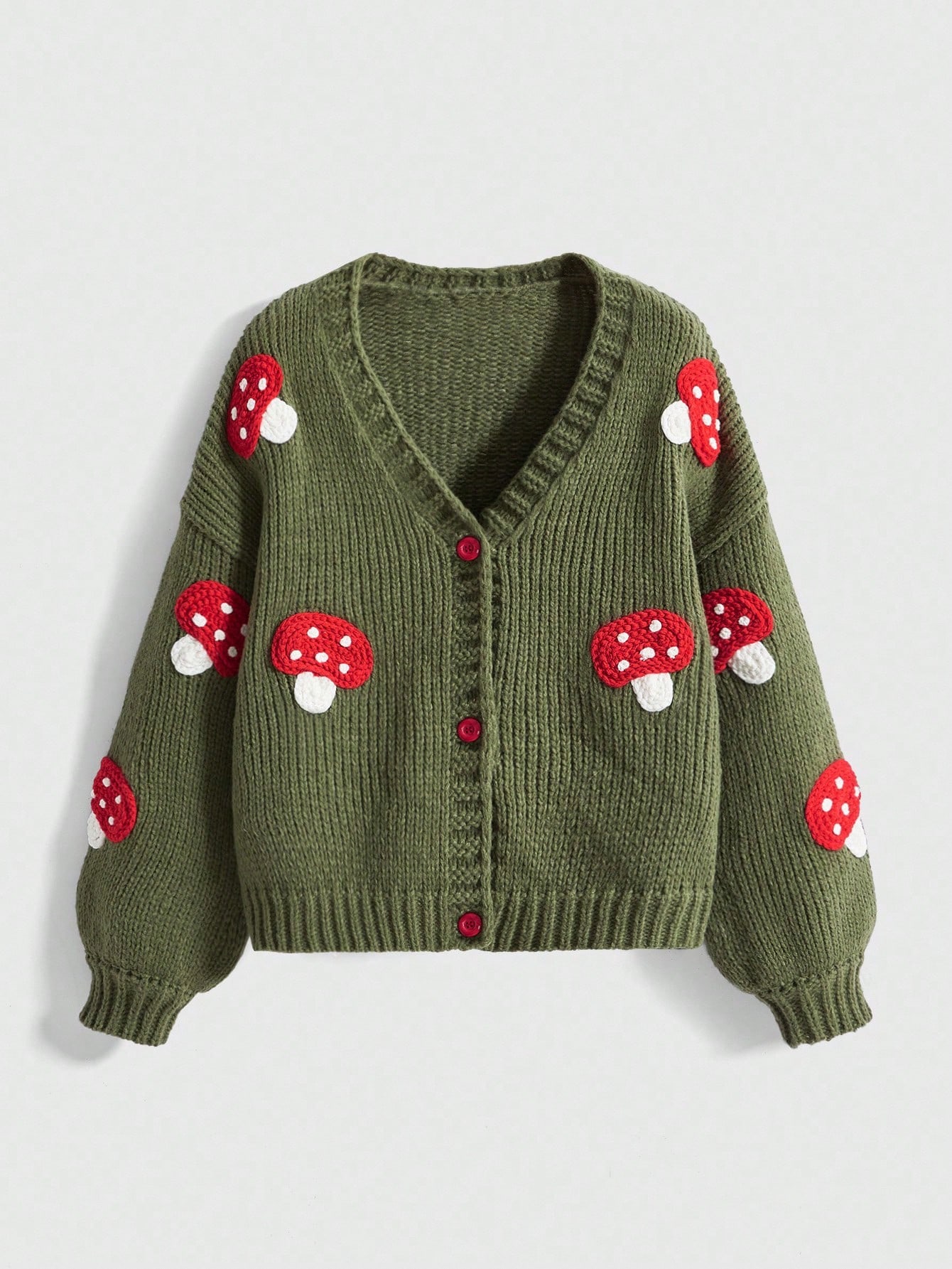Fairycore كارديجان مطرز بالفطر طويل الأكمام بتصميم فينتاج مقاس كبير، خريف/شتاء