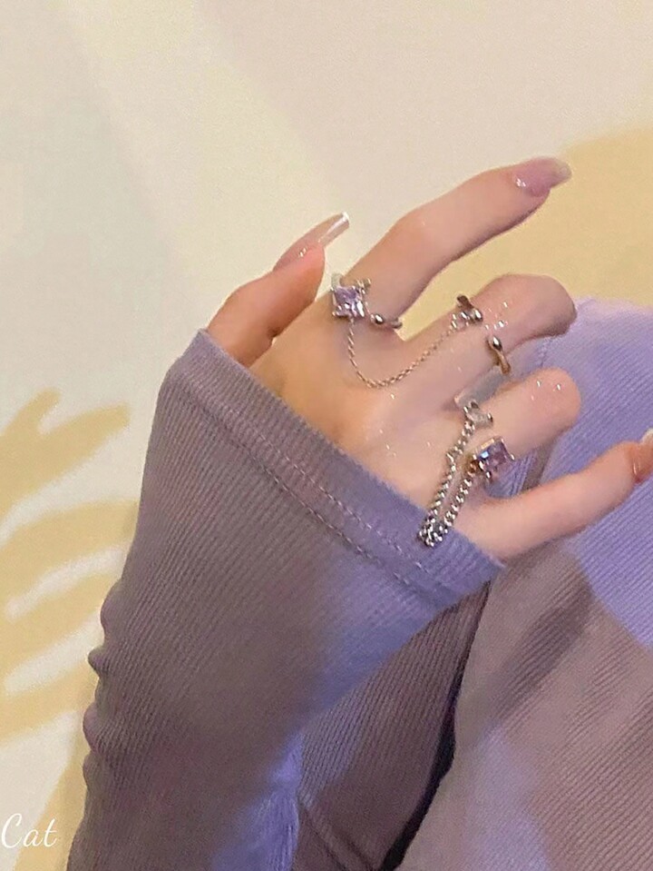 Fairycore طقم خواتم بتصميم سلسلة مزينة بالراينستون