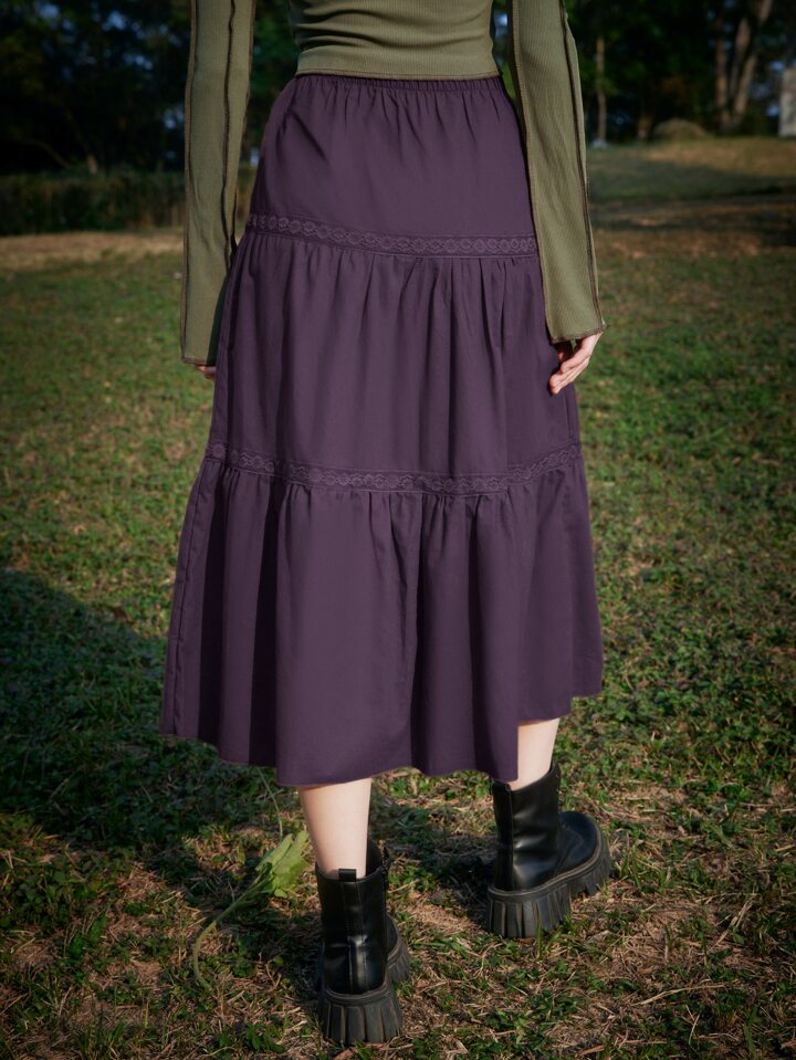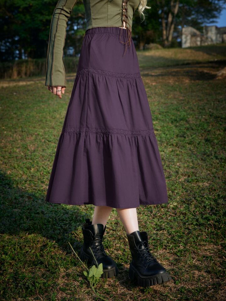 Fairycore تنورة موحدة اللون دانتيل متباين اللون