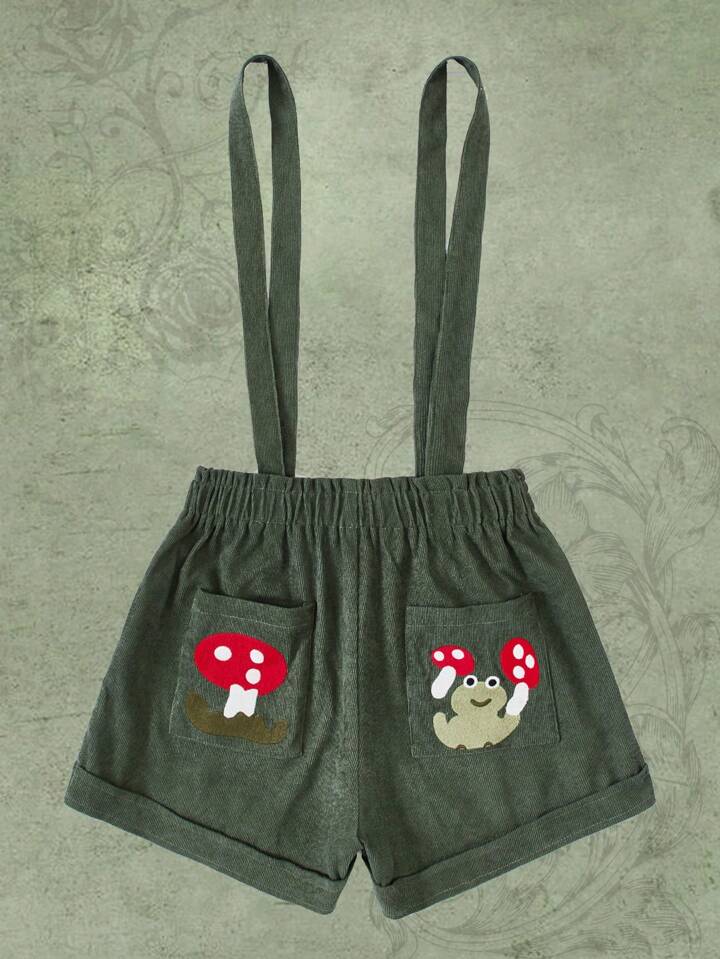 Fairycore شورت بحمالات موحدة اللون نسيج قطن