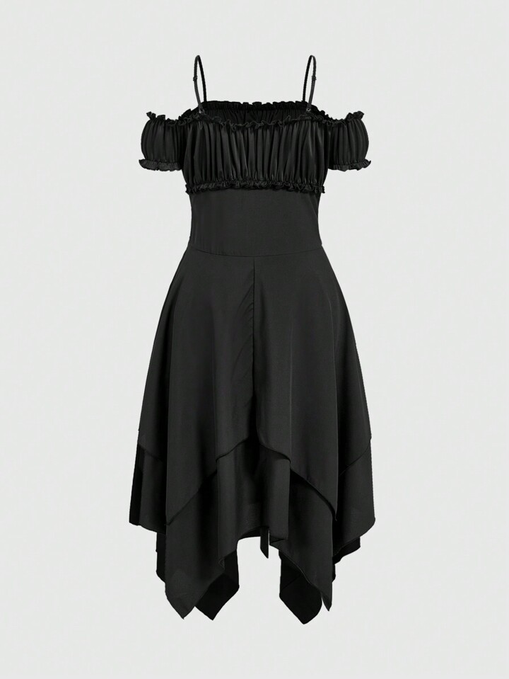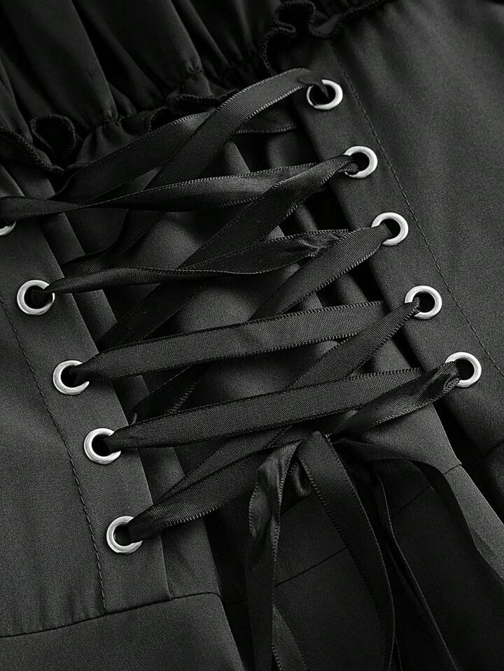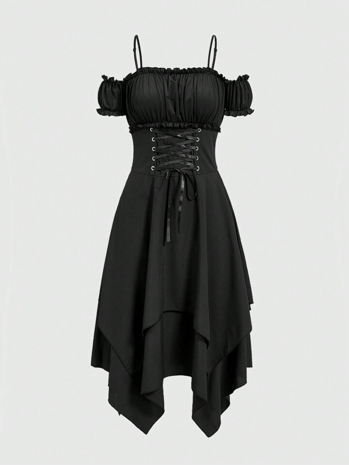 Fairycore فستان موحدة اللون رباط طية صدر حافة غير متماثل