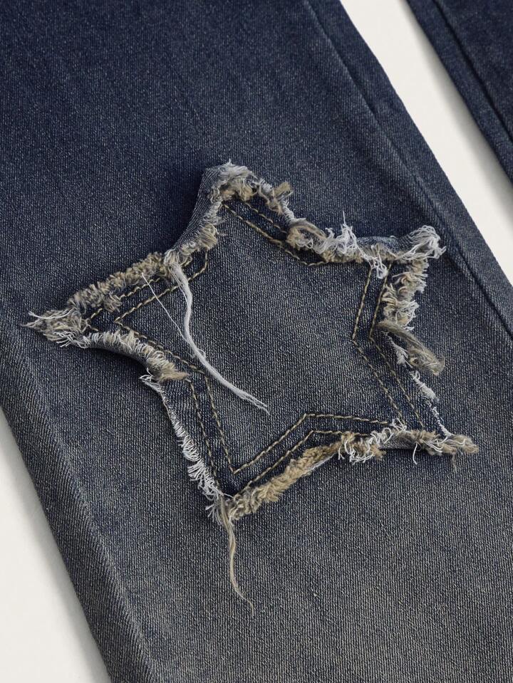 Fairycore بنطلون جينز واسع من الاسفل نمط النجوم ألوان متدرجة ممزق
