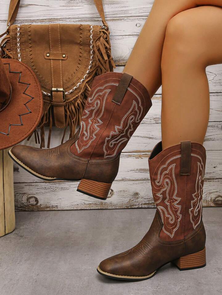 Fairycore نساء موديل ربيع وخريف 2024 الجديد للخارج، بوت قصيرة بتفصيل وخياطة إكسسوارات غربية، بوت كاوبوي للنساء لمناسبات عيد الميلاد ورأس السنة