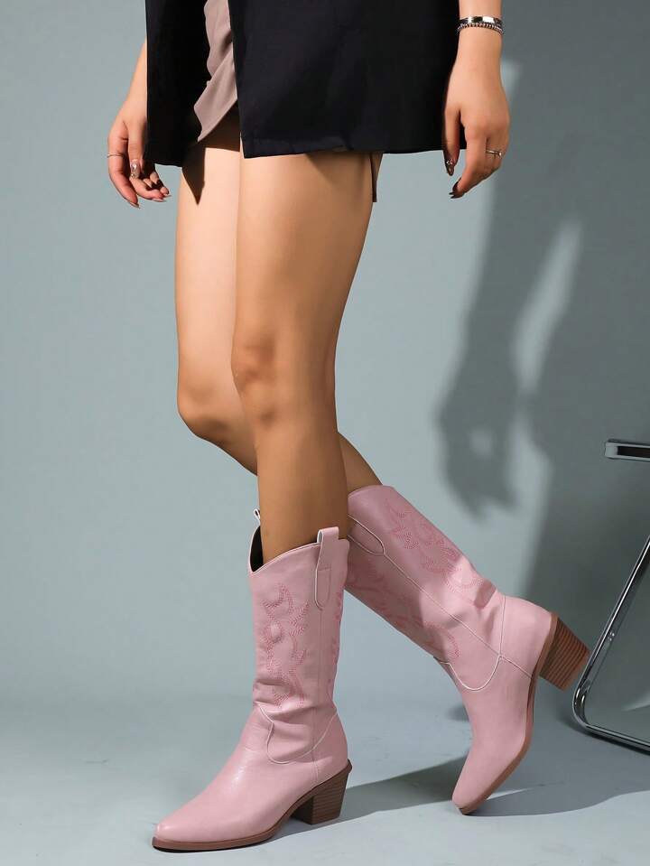 Fairycore بوت نسائي غربي بكعب سميك وأصابع مدببة وتطريزات, بوت كاوبوي نسائي عصري مميز للأناقة الخارجية