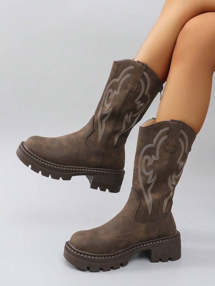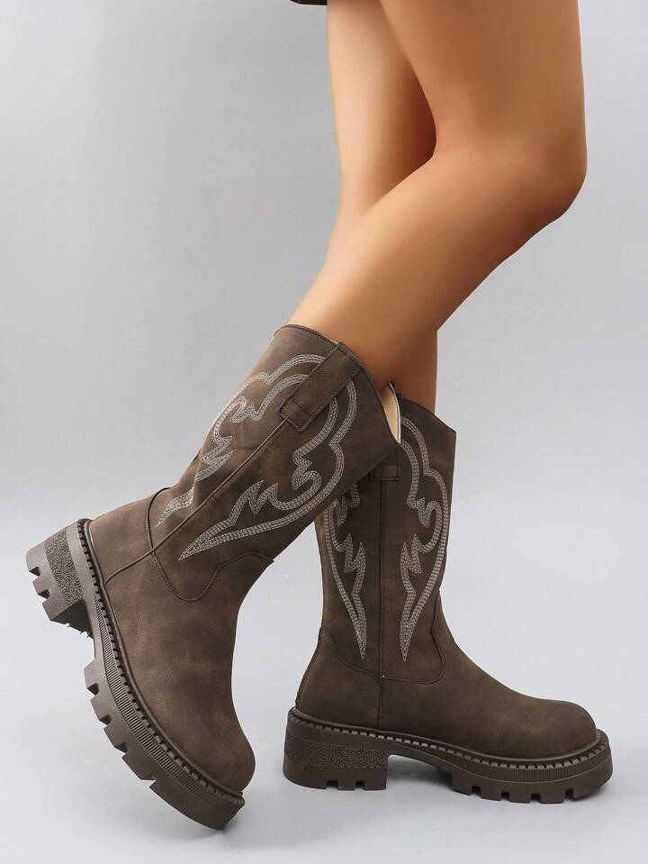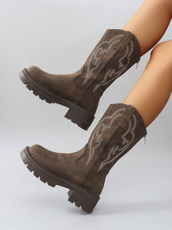 Fairycore بوت نسائية سميكة الرابطة بوت نصف الساق ريترو للخريف والشتاء سميكة الرابطة للعطلات والسفر والرياضة واليومي ارتداء بوت نسائية الخريف