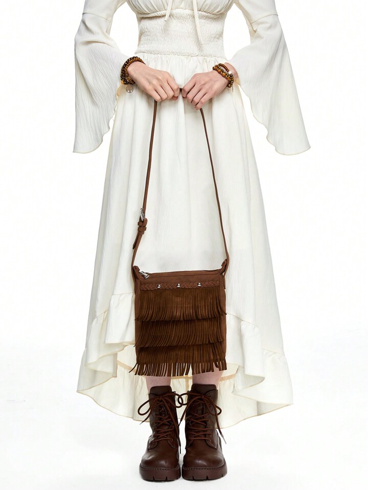 Fairycore حقيبة كتف بسحاب من الجلد الأحمر الفاتح على الطراز القديم للنساء، حقيبة كروس صغيرة مربعة من السويد الفاخر عصرية