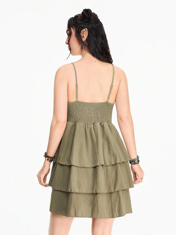 Fairycore فستان قطن مغسول بطراز Cottagecore مزين بتطريز زهري وطبقات من كشكشة الذيل