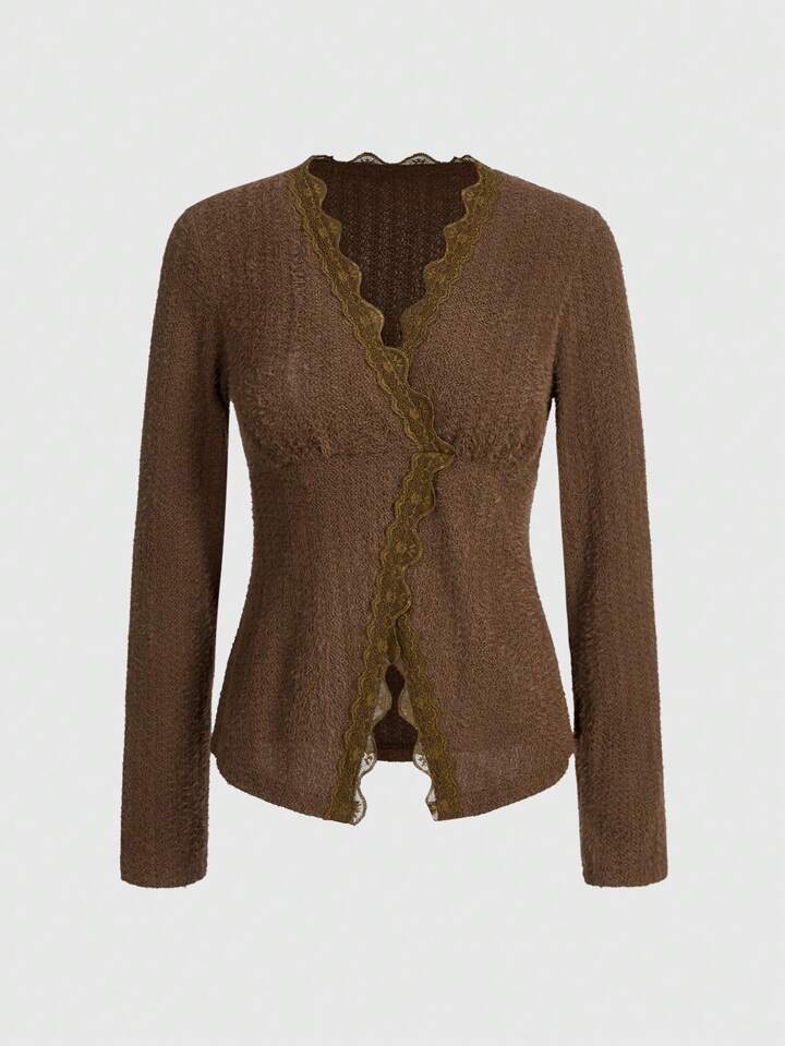 Fairycore قميص حريري مخطط واسع مزين بالدانتيل للسيدات