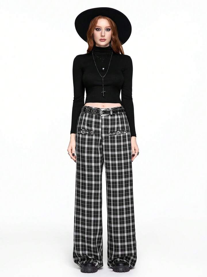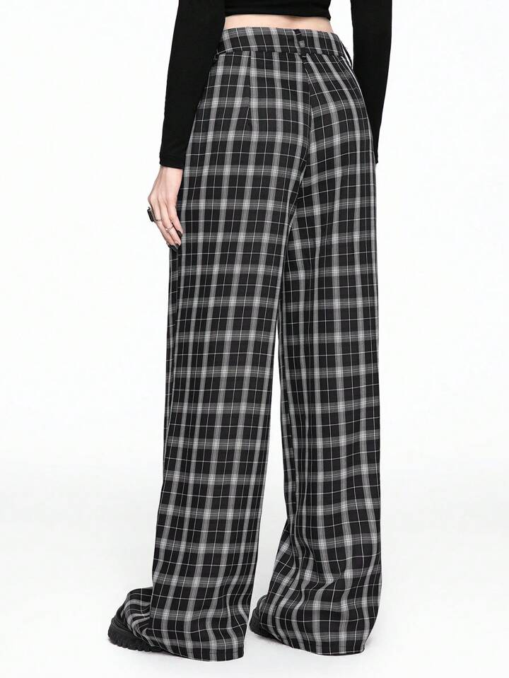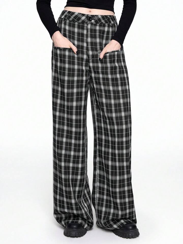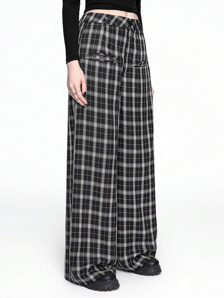 Fairycore بنطلون نسائي واسع الساق فضفاض كاجوال بنمط مربعات