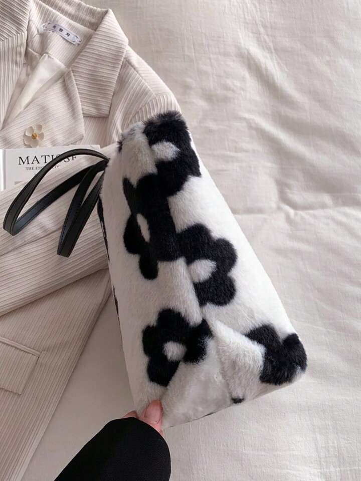 Fairycore حقيبة يد للنساء قطيفي مطبوعة