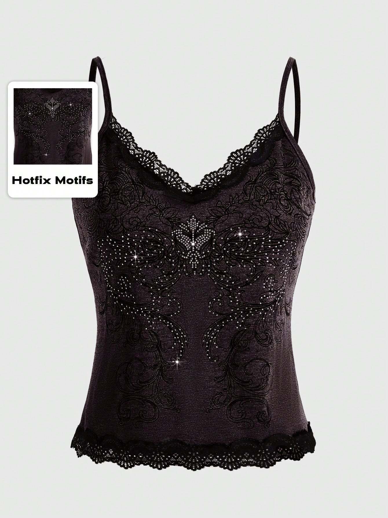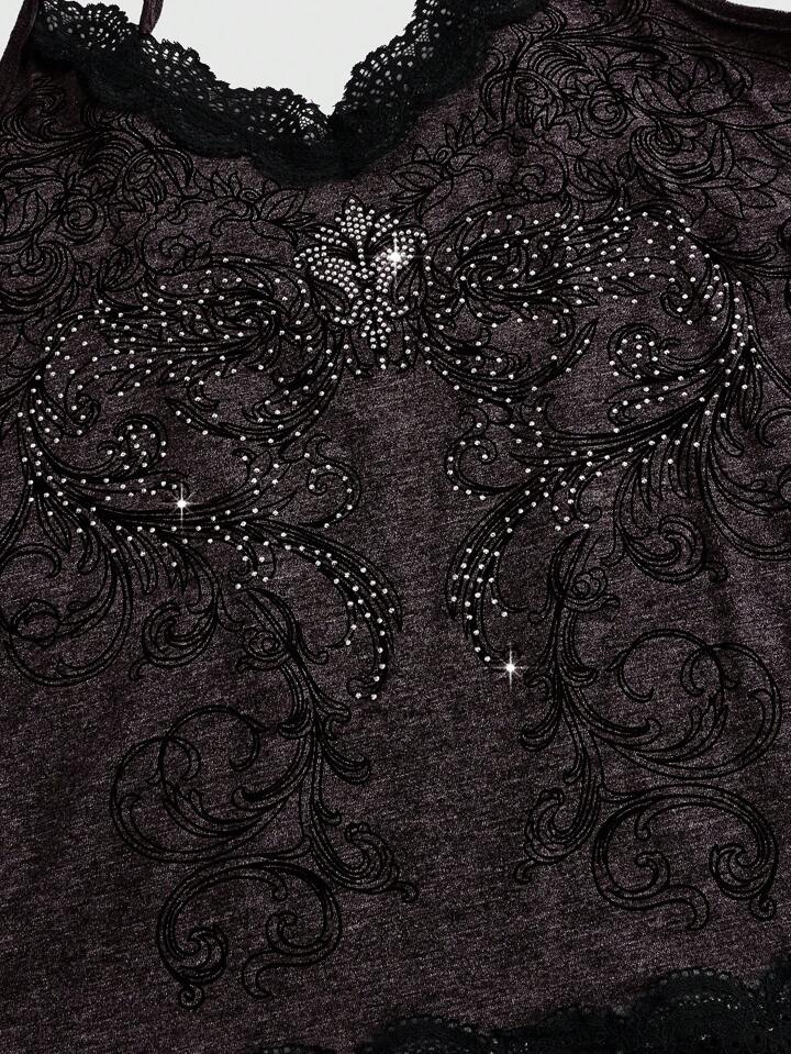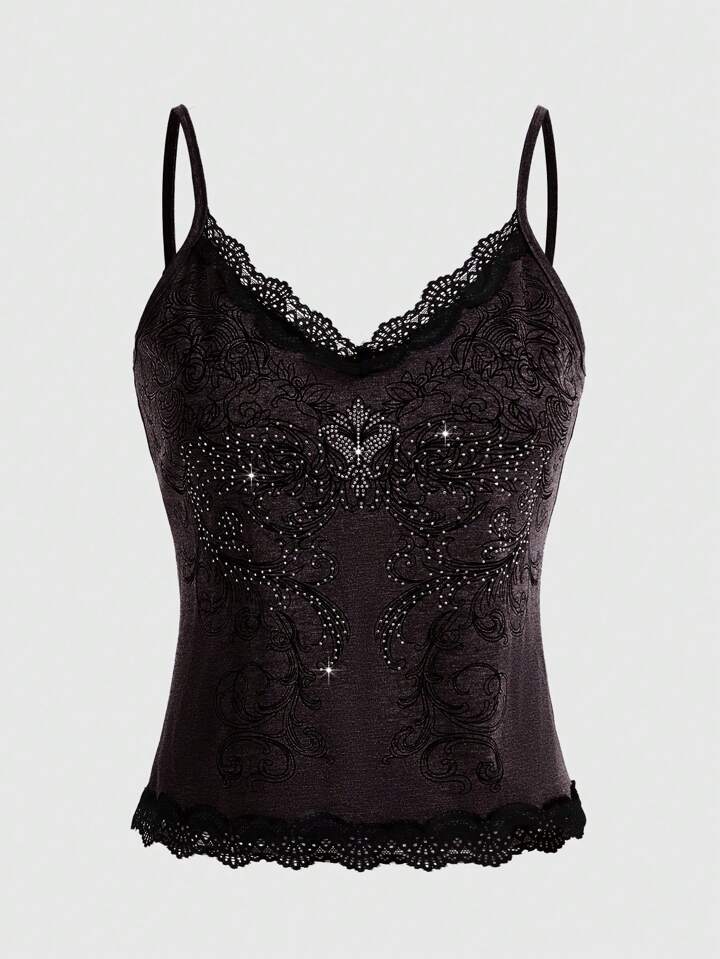 Fairycore قميص بدون أكمام واقع مرأة مغلق بدانتيل يشتمل على خرز هرمي