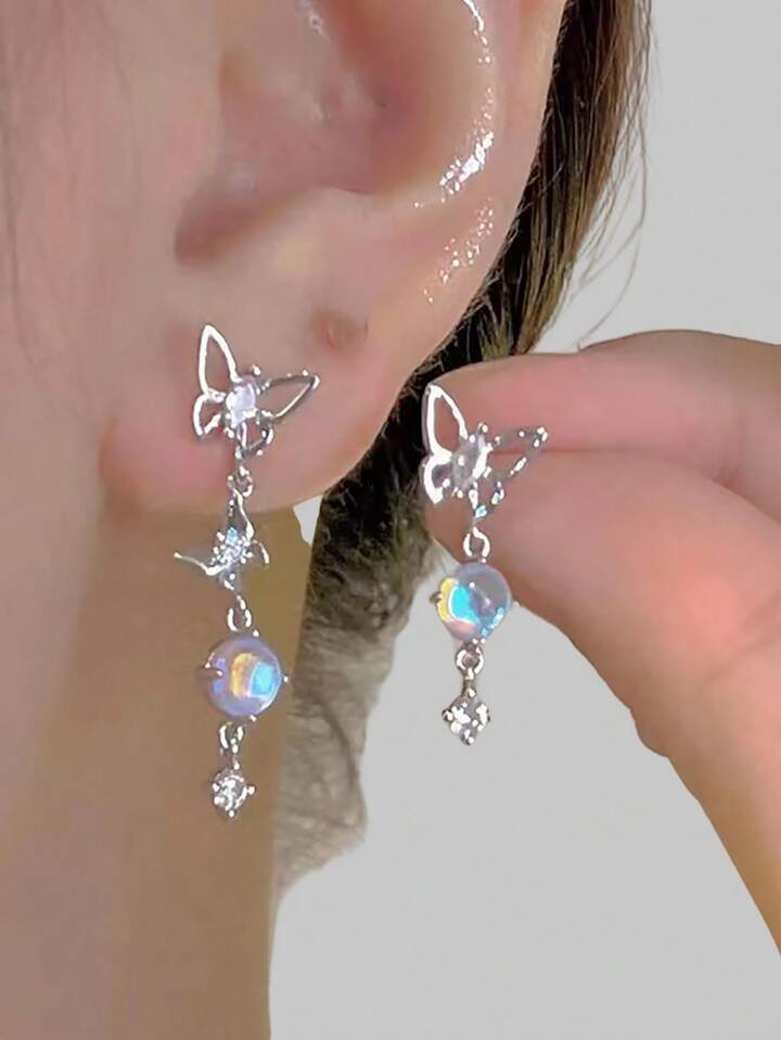 Fairycore أقراط معلقة على شكل فراشة فضية اللون للنساء