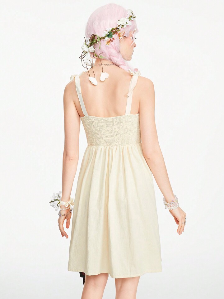 Fairycore فستان نسائي بحمالات من نسيج جاكار مخطط بنباتات وزهور الصيف ولون صلب مقسّم